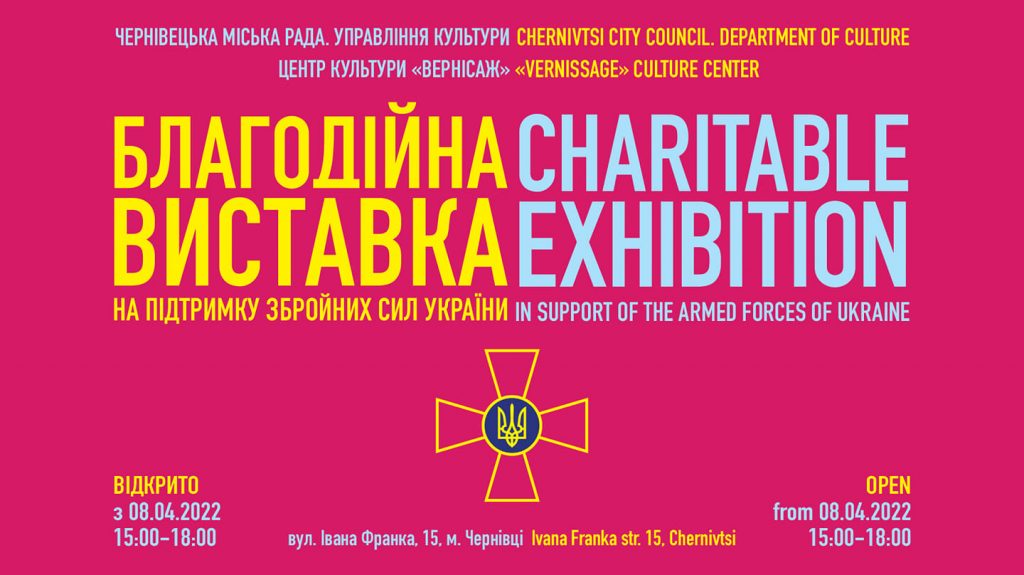 8 квітня у Центрі культури «Вернісаж», що на вулиці Івана Франка, 15, відбудеться благодійна виставка та аукціон на підтримку Збройних сил України. Представлять експозиції робіт образотворчого та декоративно-ужиткового мистецтва, які виставлять на аукціон.