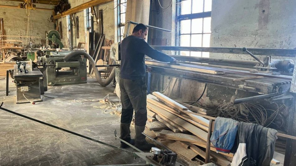 Степан Цибуляк працює в столярні. Фото: Суспільне Буковина