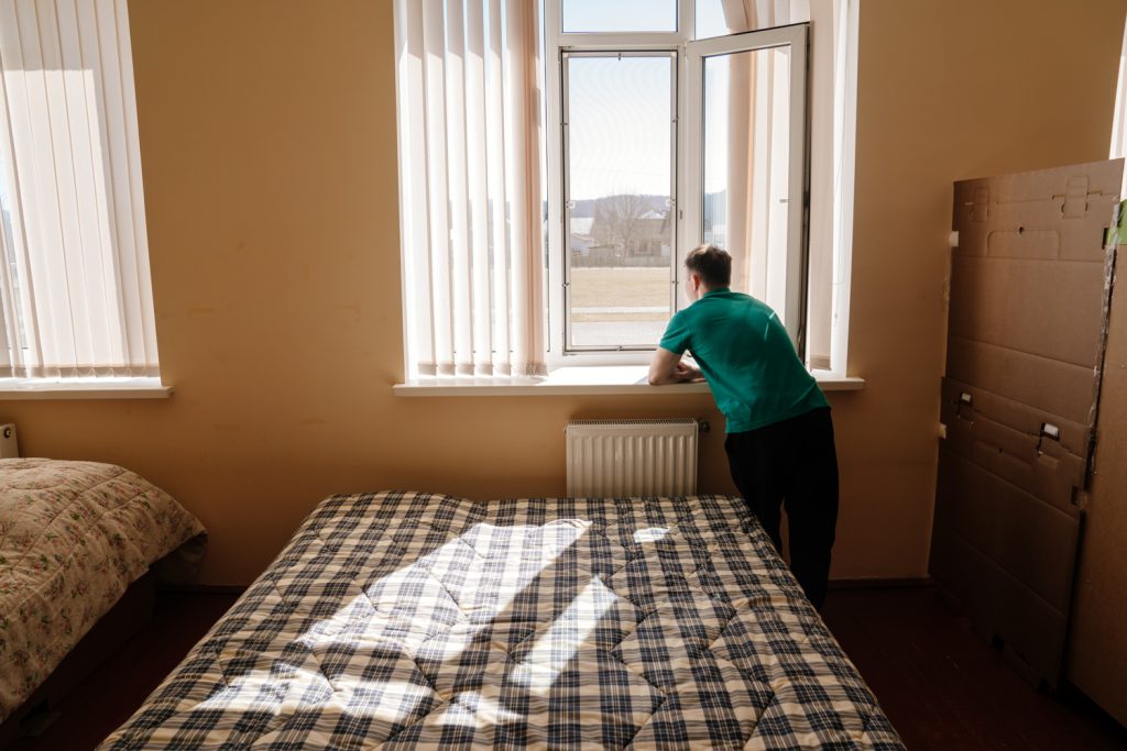 Переселенці часом також долучаються до волонтерства, та більше відпочивають. У колишніх дитячих кімнатах живуть і жінки, і чоловіки, бо можливости розділяти приміщення немає.