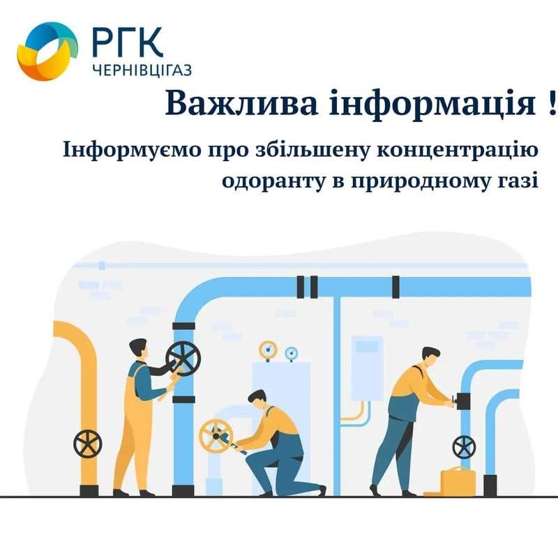 АТ “Чернівцігаз” інформує, що у зв’язку зі збільшеною концентрацією одоранту в природному газі, що надходить ГРС Шубранець, споживачі, що проживають в м. Чернівці, можуть відчувати різкий характерний «запах газу» у приміщеннях.