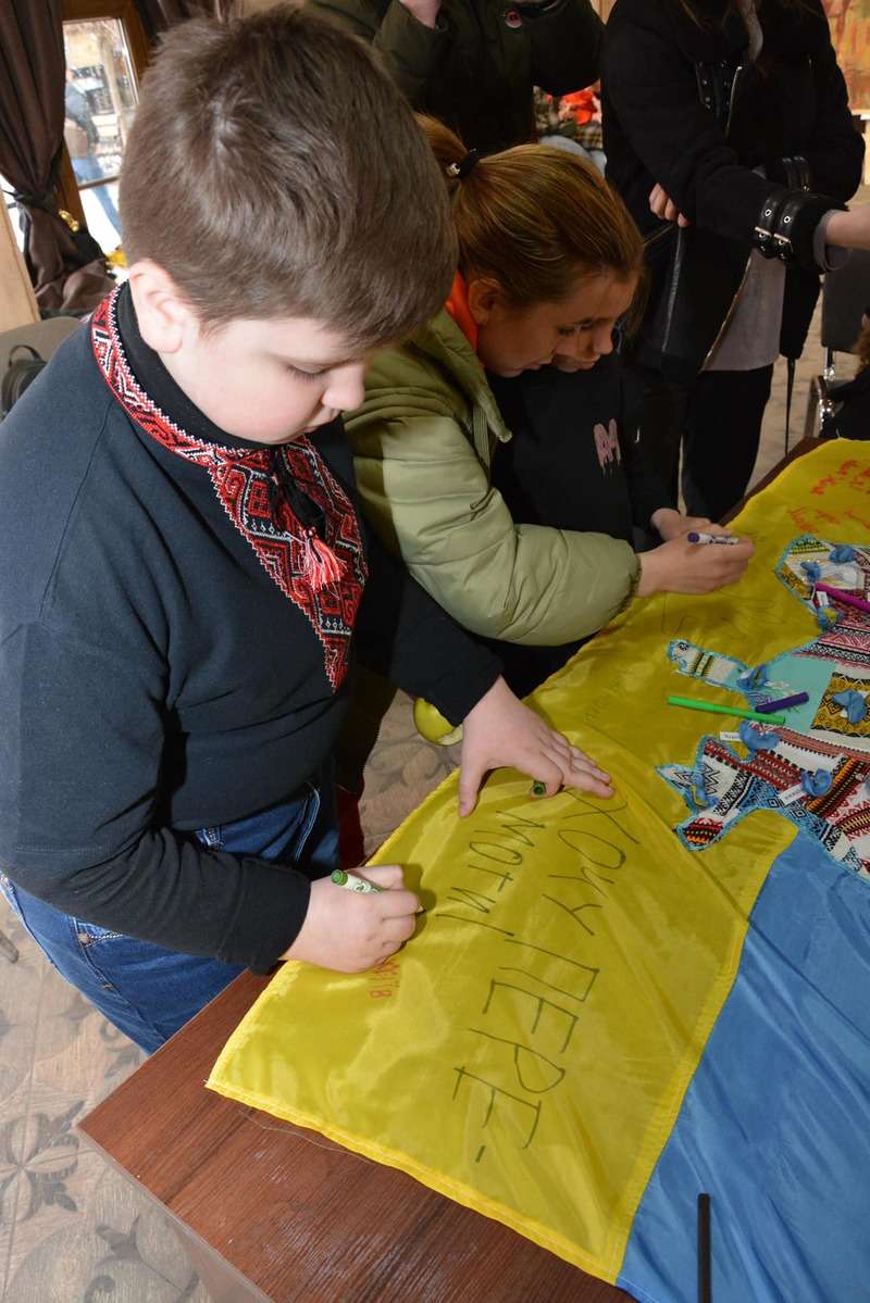 Дітки вишили на прапорі карту України, а також написали на ньому свої думки та побажання. Кожне слово, кожен клаптик наповнені любов’ю та підтримкою, повідомляють у пресслужбі Чернівецької міської ради.