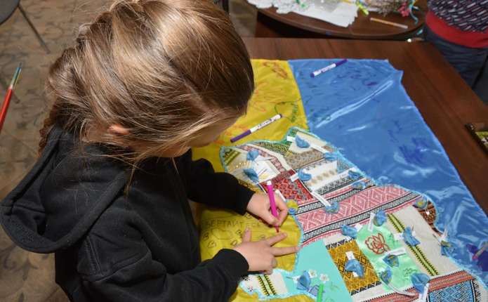 Дітки вишили на прапорі карту України, а також написали на ньому свої думки та побажання. Кожне слово, кожен клаптик наповнені любов’ю та підтримкою, повідомляють у пресслужбі Чернівецької міської ради.