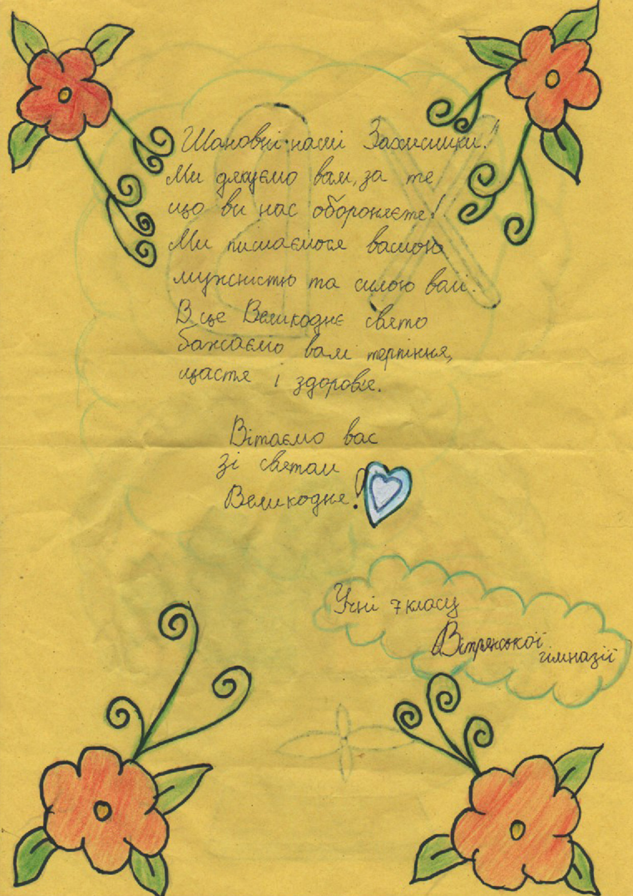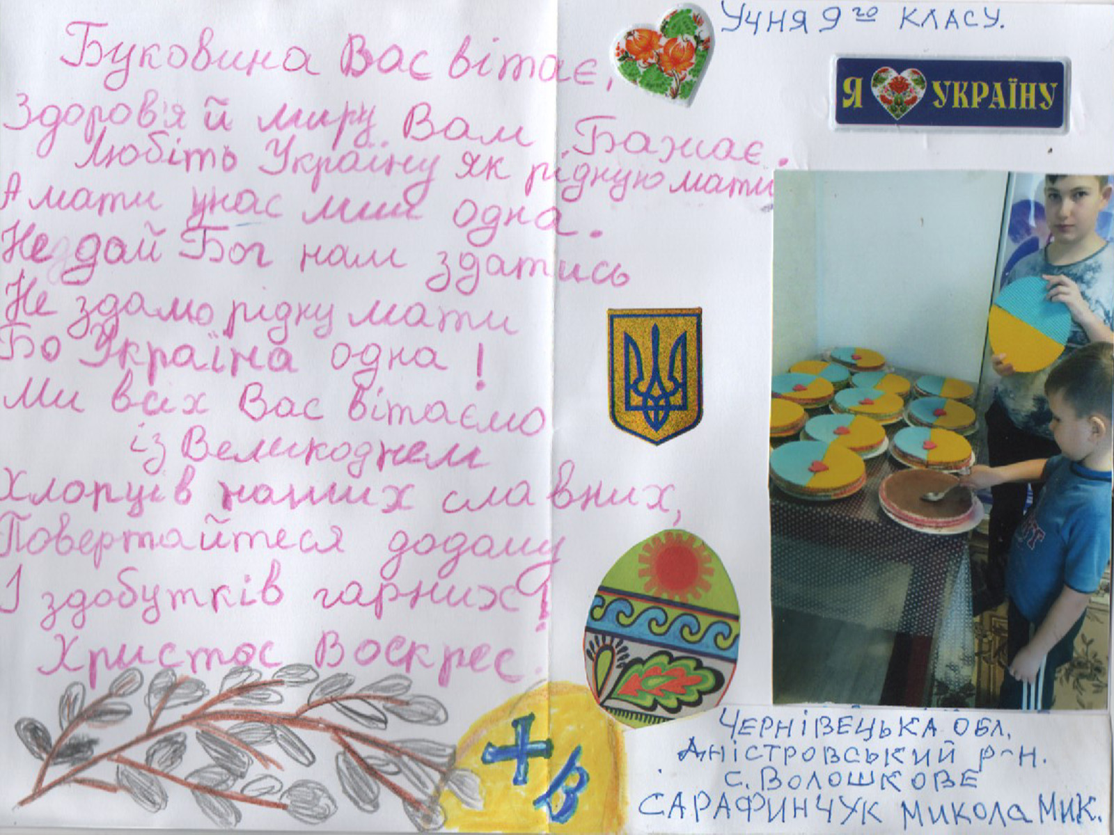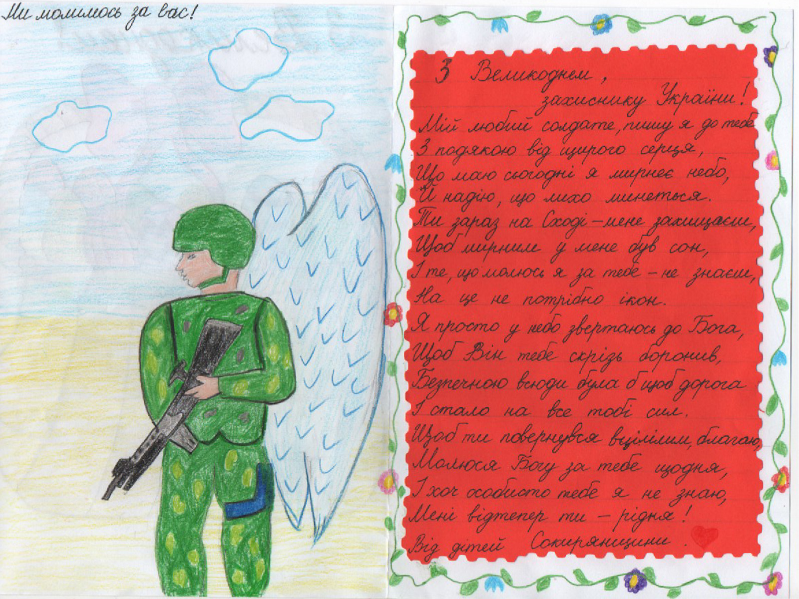 «Великодні листівки від дітей Сокирянщини – Захисникам України» – під таким гаслом серед учнів закладів загальної середньої освіти громади відбулась творча акція, аби підтримати мужніх воїнів, які тримають оборону та захищають нас від російської навали.