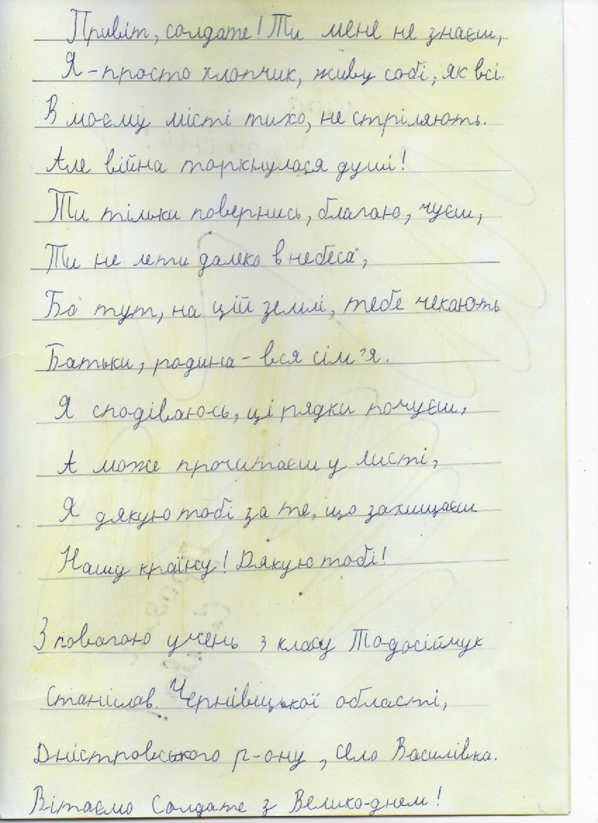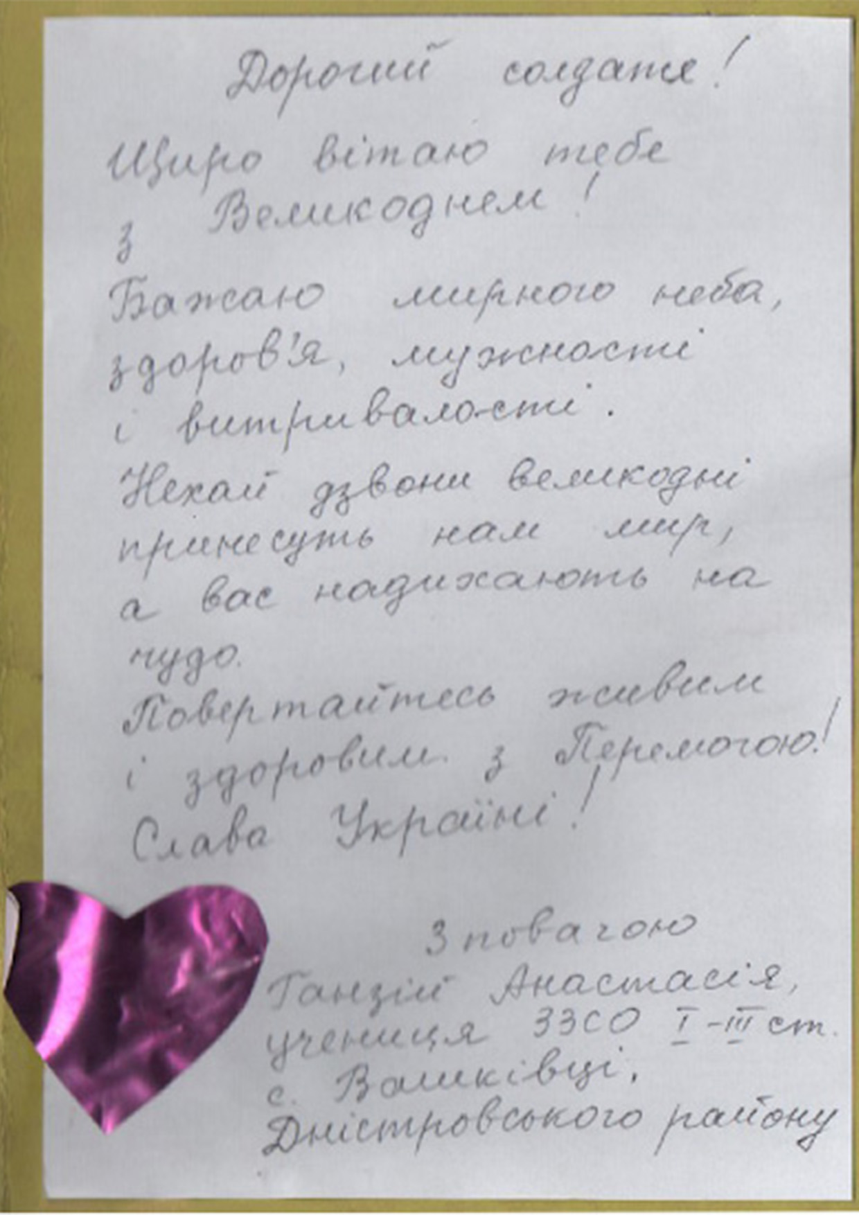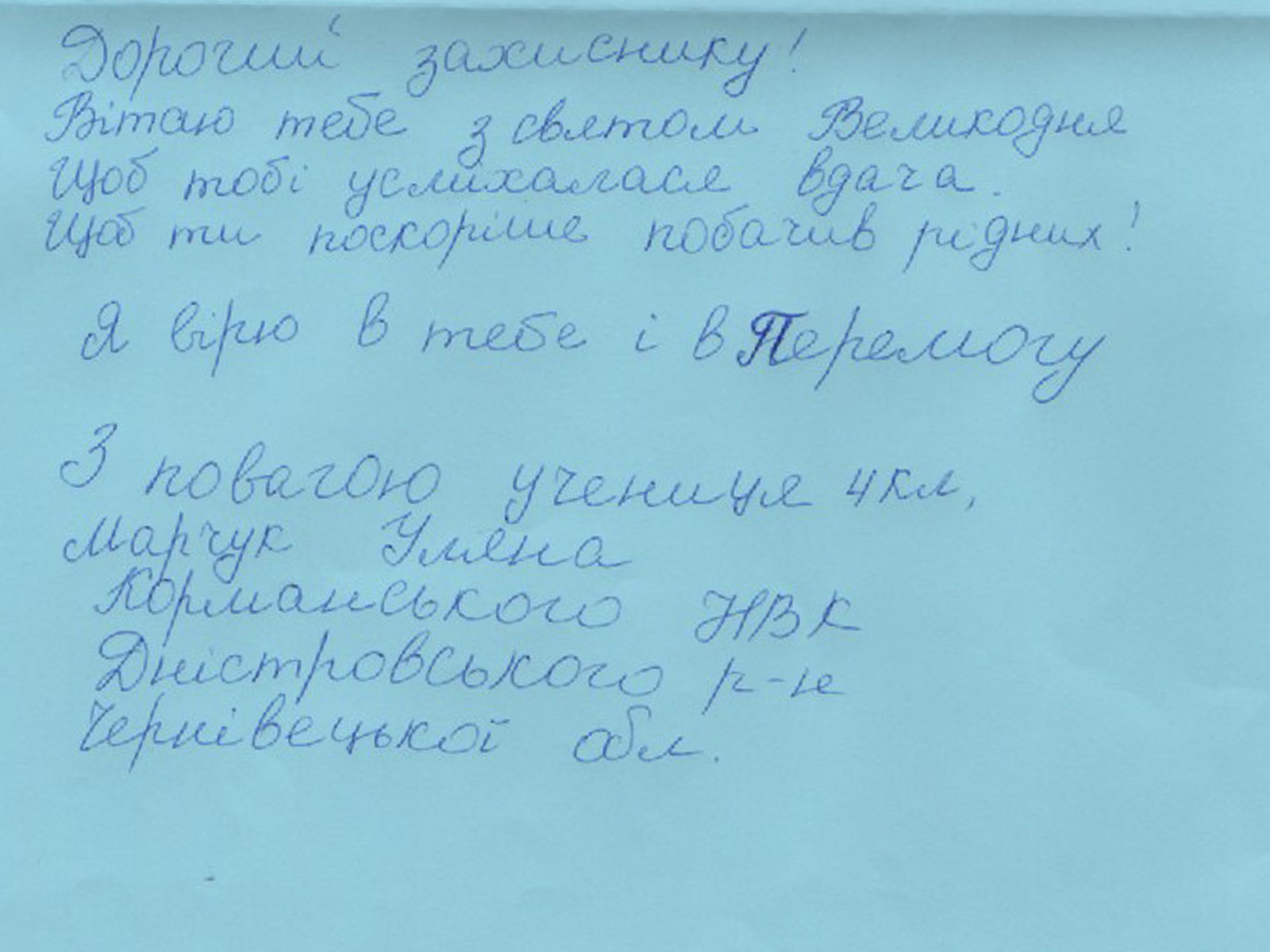 «Великодні листівки від дітей Сокирянщини – Захисникам України» – під таким гаслом серед учнів закладів загальної середньої освіти громади відбулась творча акція, аби підтримати мужніх воїнів, які тримають оборону та захищають нас від російської навали.