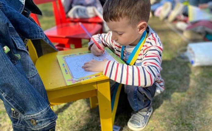 Наступна зупинка – музей просто неба, де наразі триває етнографічний проєкт «Сила Великодня». Малеча під керівництвом буковинських народних майстрів вчилася малювати символи цього світлого свята – писанки. Малювали також і на папері. Діти робили патріотичні листівки для воїнів, які мужньо захищають Україну від російського агресора. Крім того, тут влаштували інтерактивні читання на великодню тематику, в яких найменші гості Буковини радо взяли участь.