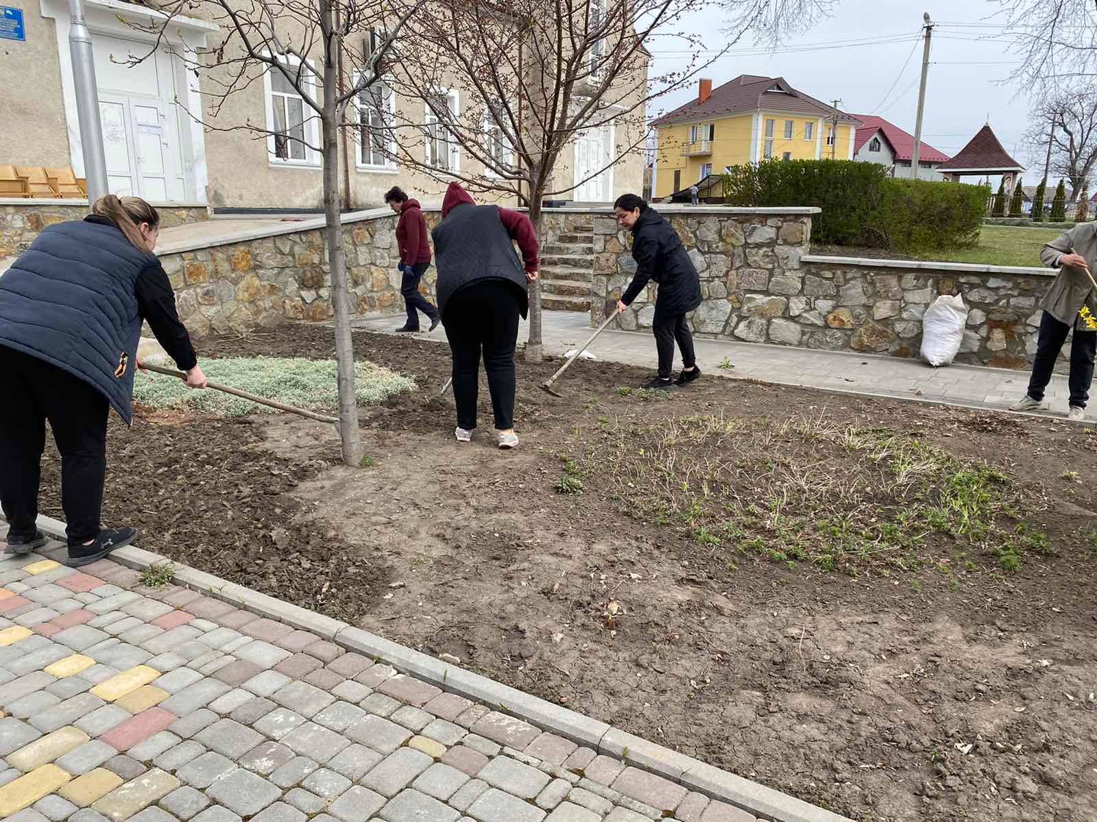 Впорядкувати територію освітньо-мистецького центру, що в місті Сокиряни, 20 квітня, зібралися працівники сфери культури на чолі із начальником відділу культури міської ради Євгеном Пленгеєм.