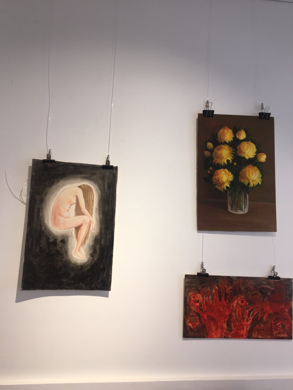 Серед українських митців, які представили свої роботи, наймолодшою учасницею стала вихованка Сокирянської художньої школи Єва Мазур. Дівчина, нажахана звірствами окупантів в українських містах Бучі та Ірпіні, показала всі свої переживання на папері. Адже про ці жахіття у 21 столітті необхідно кричати та діяти проти них. І мистецтво, як пояснюють організатори виставки, – один з інструментів, щоб вміти це робити. Всього Єва представила три свої тематичні роботи.