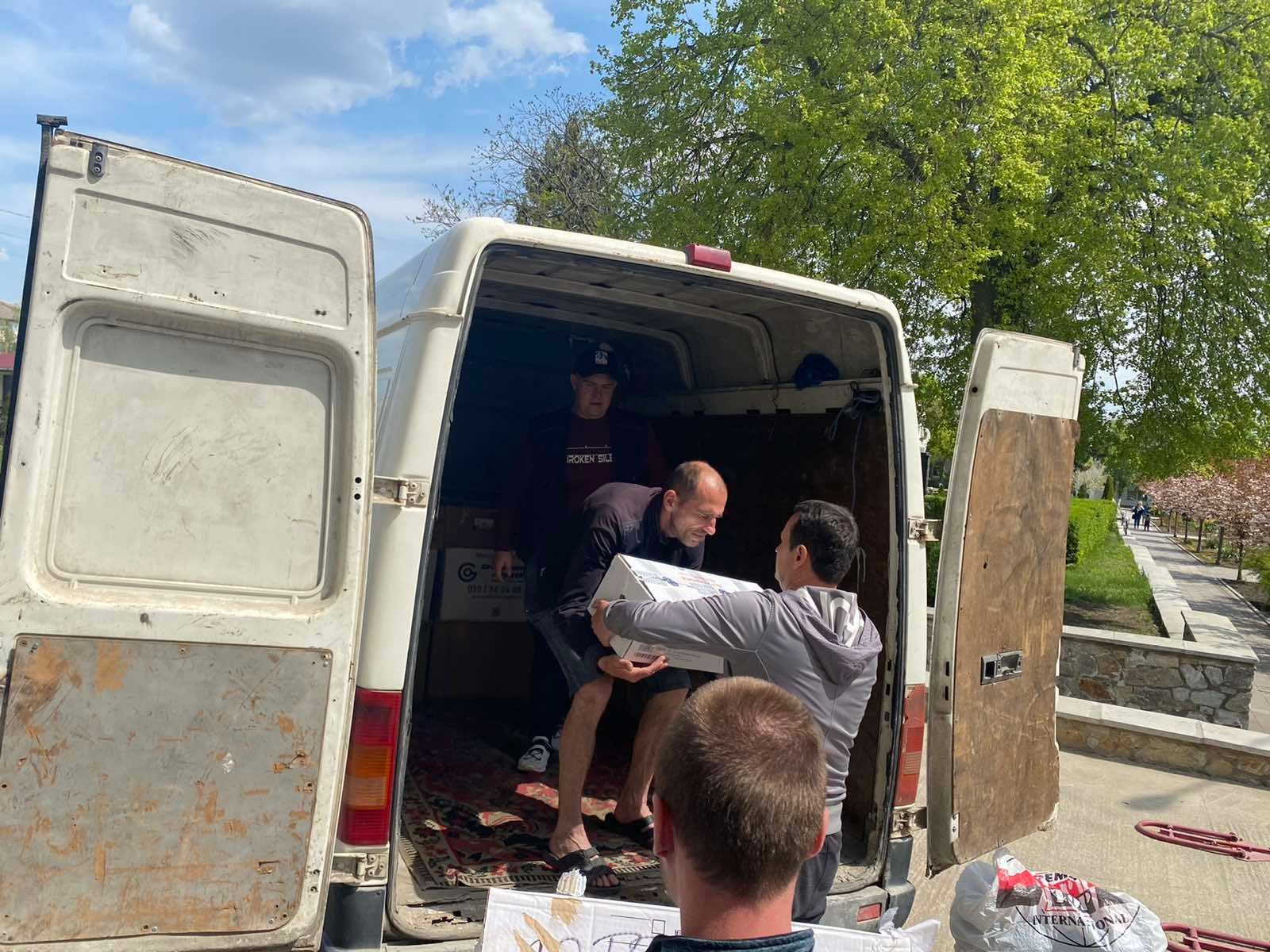 Днями фахівці пункту збору та видачі гуманітарної допомоги в місті Сокиряни завантажили для потреб військових продукти харчування, солодощі, засоби гігієни та медикаменти.