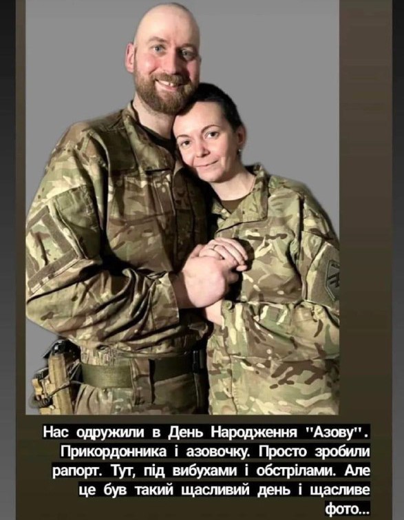 Церемонія реєстрації шлюбу між прикордонником Андрієм та азовчанкою Валерією відбулася 5 травня, у день створення полку «Азов», у катакомбах маріупольського заводу «Азовсталь».