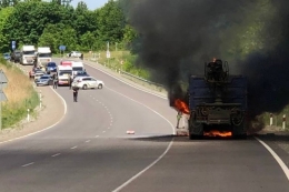 На Буковині через самовільне загоранням вантажного автомобіля перекрито рух на трасі в напрямку ПП “Порубне”.