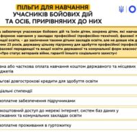 Учасникам бойових дій та їхнім дітям надаються пільги для здобуття освіти