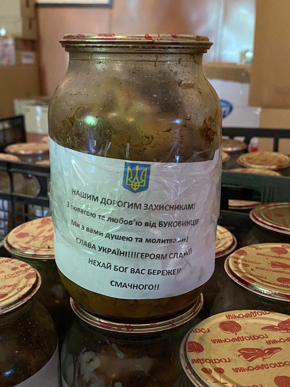 М’ясні консерви, дбайливо приготовлені родиною із села Романківці, солодощі, гарячі напої, овочі домашньої консервації, а також свіжі запашні паляниці спечені вправними господинями села Романківці, передали нашим захисникам Євген Пленгей, Олександр Серебрянський та Василь Кушнір.