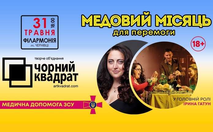 31 травня 2022 року творче об’єднання «Чорний квадрат» на сцені обласної філармонії покаже виставу «Медовий місяць для перемоги». У головній ролі Ірина Гатун. Захід розпочнеться о 18.00 годині.