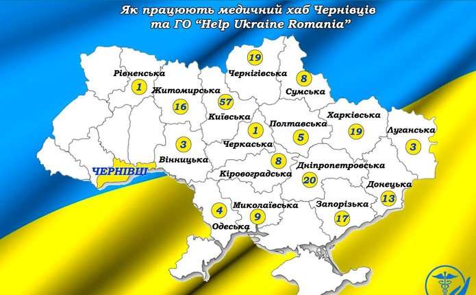 Міський медичний хаб працює в складі ГО HELP UKRAINE ROMANIA. Допомогу відправляли до 16-ти областей України. Найбільше – до Київської, Житомирської, Запорізької та Дніпропетровської областей. Також медичну гуманітарну допомогу розподіляли у західні регіони для забезпечення внутрішньо переміщених осіб.