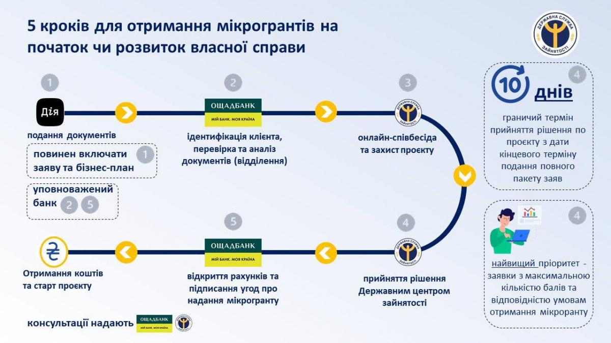 Консультацію щодо умов програми та оформлення заявки можна отримати у відділенні Ощадбанк, центрі зайнятості, онлайн-підтримці – через чат-бот Державної служби зайнятості @DCZ_worknow_bot.