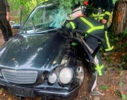 Водій автомобіля “Mercedes-Benz” не врахував дорожньої обстановки, допустив виїзд легковика за межі дороги та в’їхав у дерево.
