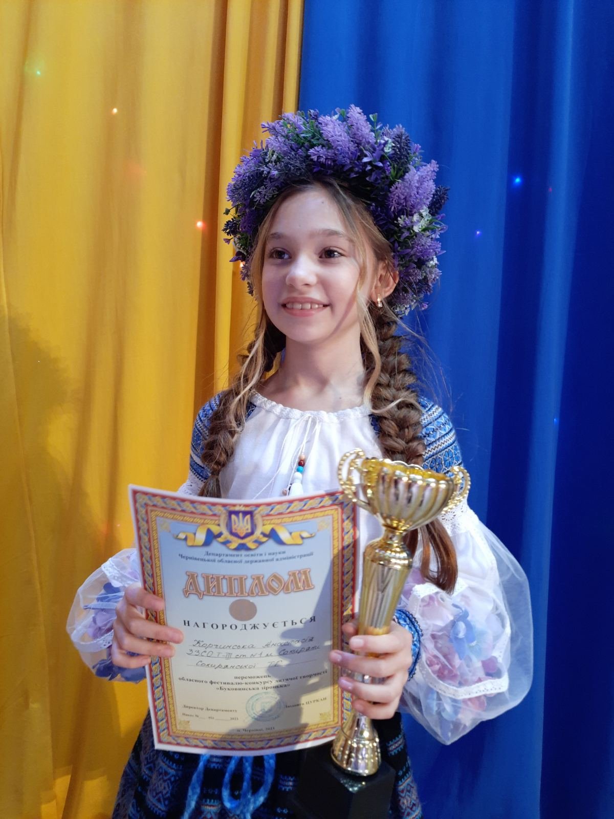 Отримуватиме стипендію також Анастасія Корчинська – учениця 6 класу закладу загальної середньої освіти І-ІІІ ступенів №1 м. Сокиряни. Юна сокирянка є переможницею обласного фестивалю-конкурсу «Рідна пісня», лауреатка ІІІ премії онлайн-конкурсу «Джерело надій». Також Анастасія здобула перше місце в обласному фестивалі-конкурсі дитячої творчості «Буковинська зіронька» та фестивалі-конкурсі вокально-хорової творчості композитора Михайла Мафтуляка «Свої пісні дарую людям».