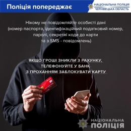 Учора, 5 вересня, до поліції звернулася 46-річна чернівчанка, яка стала жертвою шахрайства. Заявниця розповіла поліцейським, що у соціальній мережі знайшла оголошення про надання фінансової допомоги людям у період воєнного стану. Жінка перейшла за вказаним посиланням, внесла дані своєї банківської картки, після чого з її рахунку було знято майже 50 тисяч гривень.