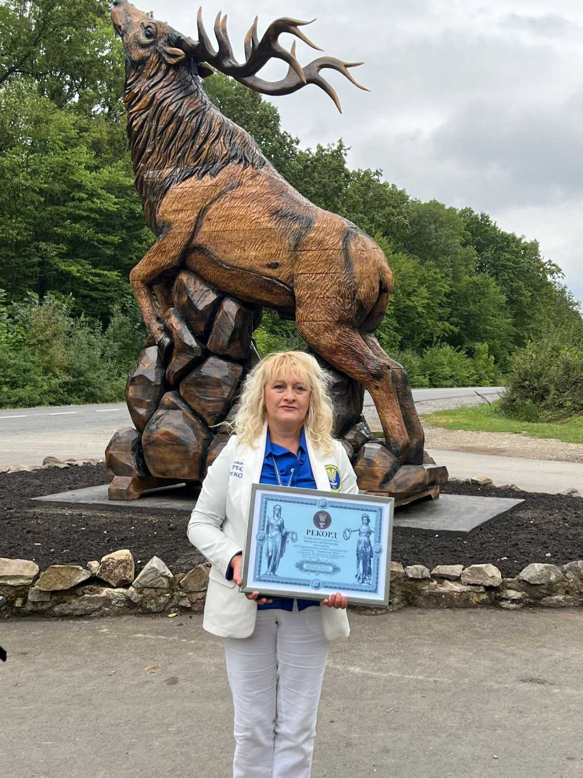 Як зауважила керівник «Національного реєстру рекордів України» Лана Ветрова, яка сьогодні відвідала Сокирянщину, аби особисто пересвідчитись в унікальності творіння, дерев’яна скульптура оленя є найбільшою в Україні. Її висота сягає 4 м 47 см. Відтак, родзинка сокирянського краю тепер офіційно занесена до «Національного реєстру рекордів України». Відповідний документ організатору і натхненнику ідеї – директору ДП “Сокирянське лісове господарство” Олександру Чебану вручила Лана Ветрова.