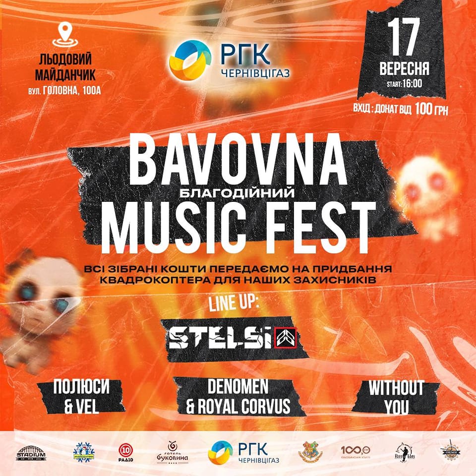 17 вересня у Чернівцях проведуть благодійний концерт «Bavovna Music Fest».