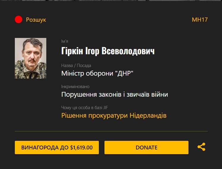 На сайті JIF вже є профілі ігоря гіркіна, командира «кадировського» підрозділу «ахмат» Анзора Бісаєва, персоналу донецького концтабору «Ізоляція» та інших.