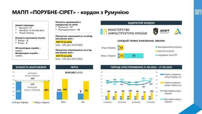 Також кількість авто зменшилася на 372. Станом на 09:00 28 вересня 2022 року тут зафіксовано 668 транспортних засобів.
