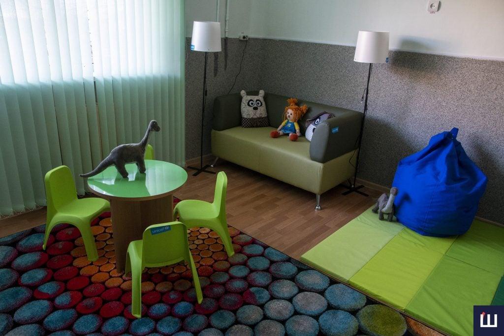 Щоб створити домашнє середовище для постраждалих, тут ніхто не надягатиме білих халатів — усі працівники ходитимуть у звичайному одязі. Дитина може погратися, поїсти, випити чаю. Усі двері будуть відчинені, крім дверей психолога.