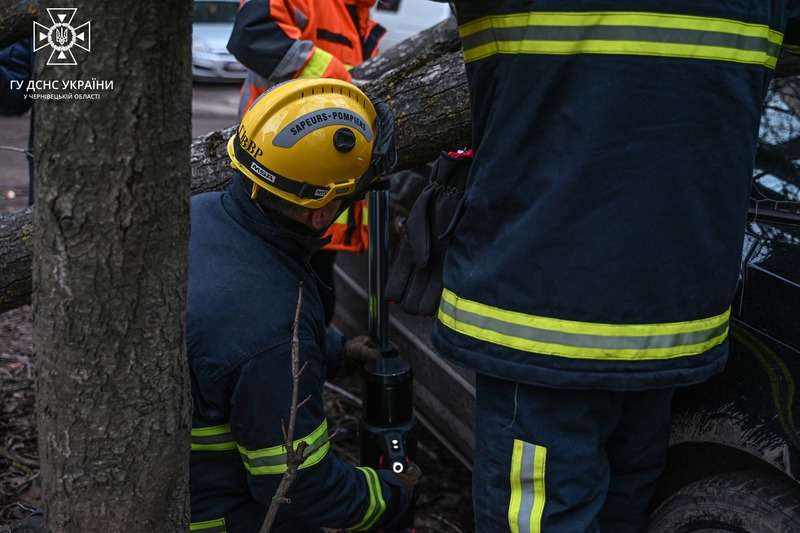 На місце події було направлено групу рятувальних та висотно-верхолазних робіт пожежно-рятувальної частини Аварійно-рятувального загону спеціального призначення. Рятувальники за допомогою спецінструментів вивільнили автомобіль, розпилили та прибрали дерево. Про це повідомляє Головне управління ДСНС України у Чернівецькій області.