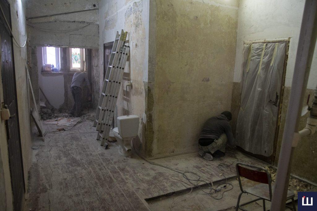 «У нас багато часу зайняла робота з документації, проєктів, а також – із дизайнером Денисом Зазубеком. Зараз почали “брудні” роботи – облаштування стін, санвузла, гардеробу, тому що цей простір за своєю функцією був передбачений для потреб театру саме як майстерня. Там є можливість опрацьовувати великі фрагменти декорацій, спускати їх через люк одразу в складське приміщення і вже звідти перевозити на основну сцену театру. Зараз це вже передбачений публічний простір. І для того, щоб запросити туди людей, потрібно виконати чимало норм щодо безпеки та комфорту».