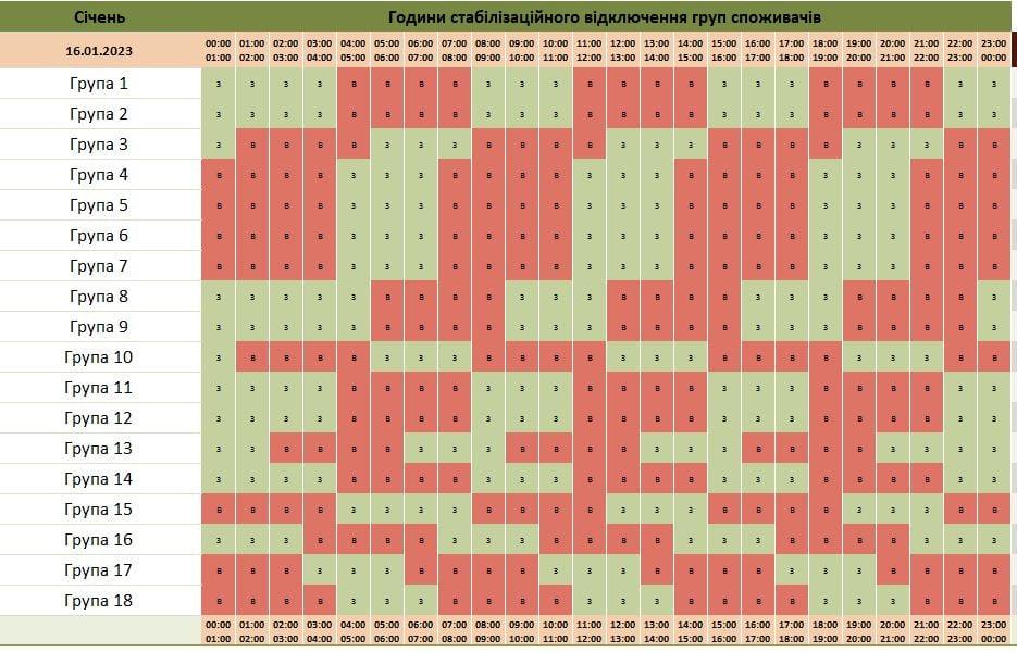 У Чернівецькій області оприлюднили графік стабілізаційних вимкнень електроенергії на сьогодні, 16 січня. Про це повідомляють в АТ «Чернівціобленерго».