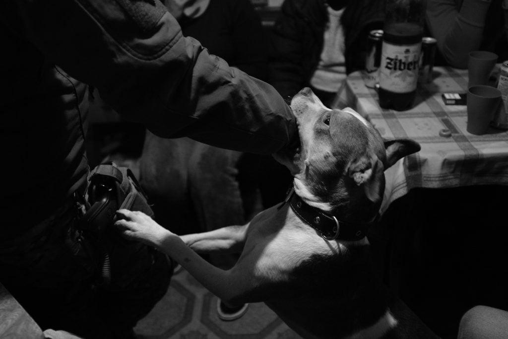 «Пса дуже любить вся рота», — каже Олена. — Навіть коли хлопці розкидані по різних приміщеннях, вони приходять подуріти з ним».