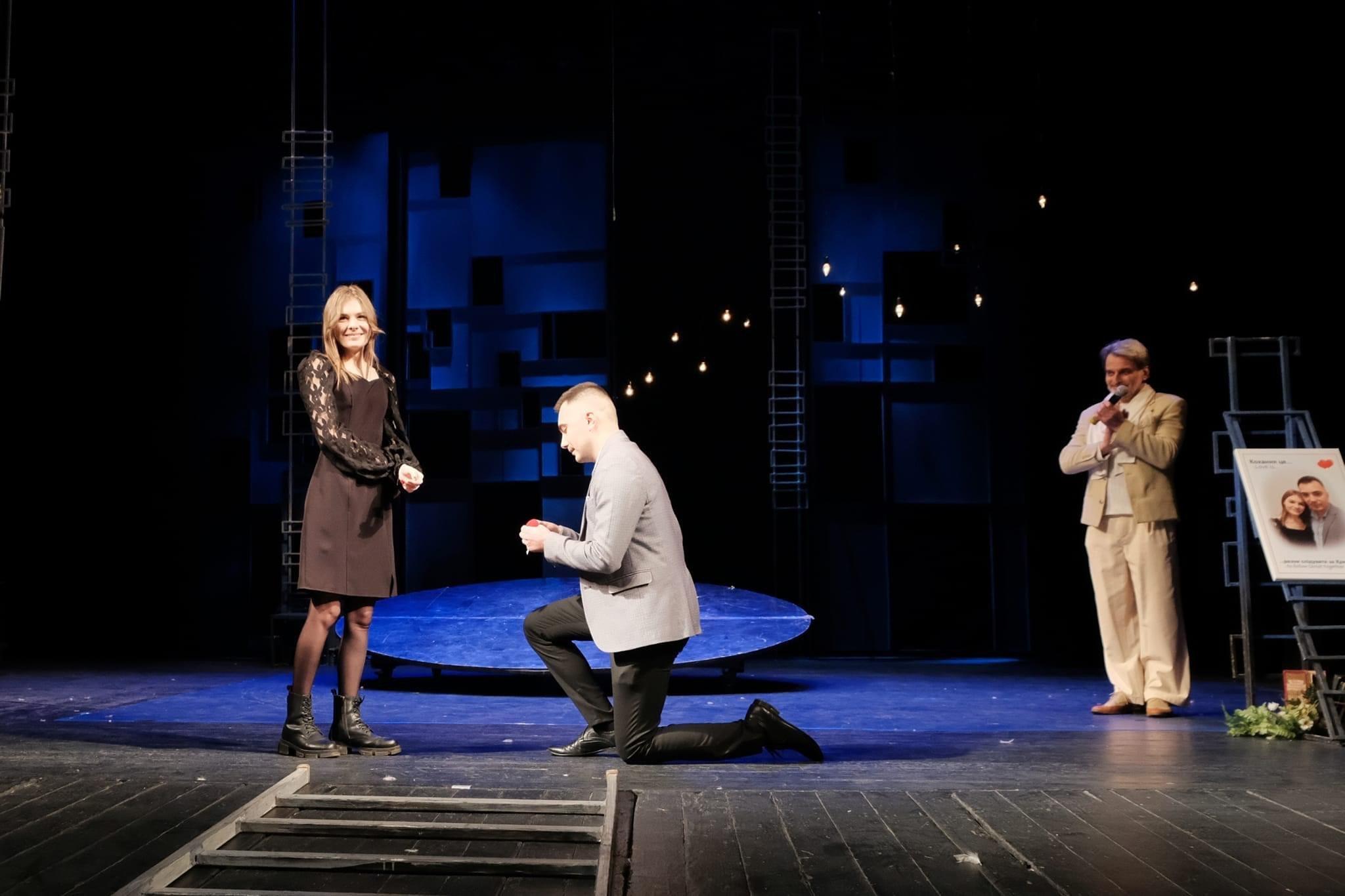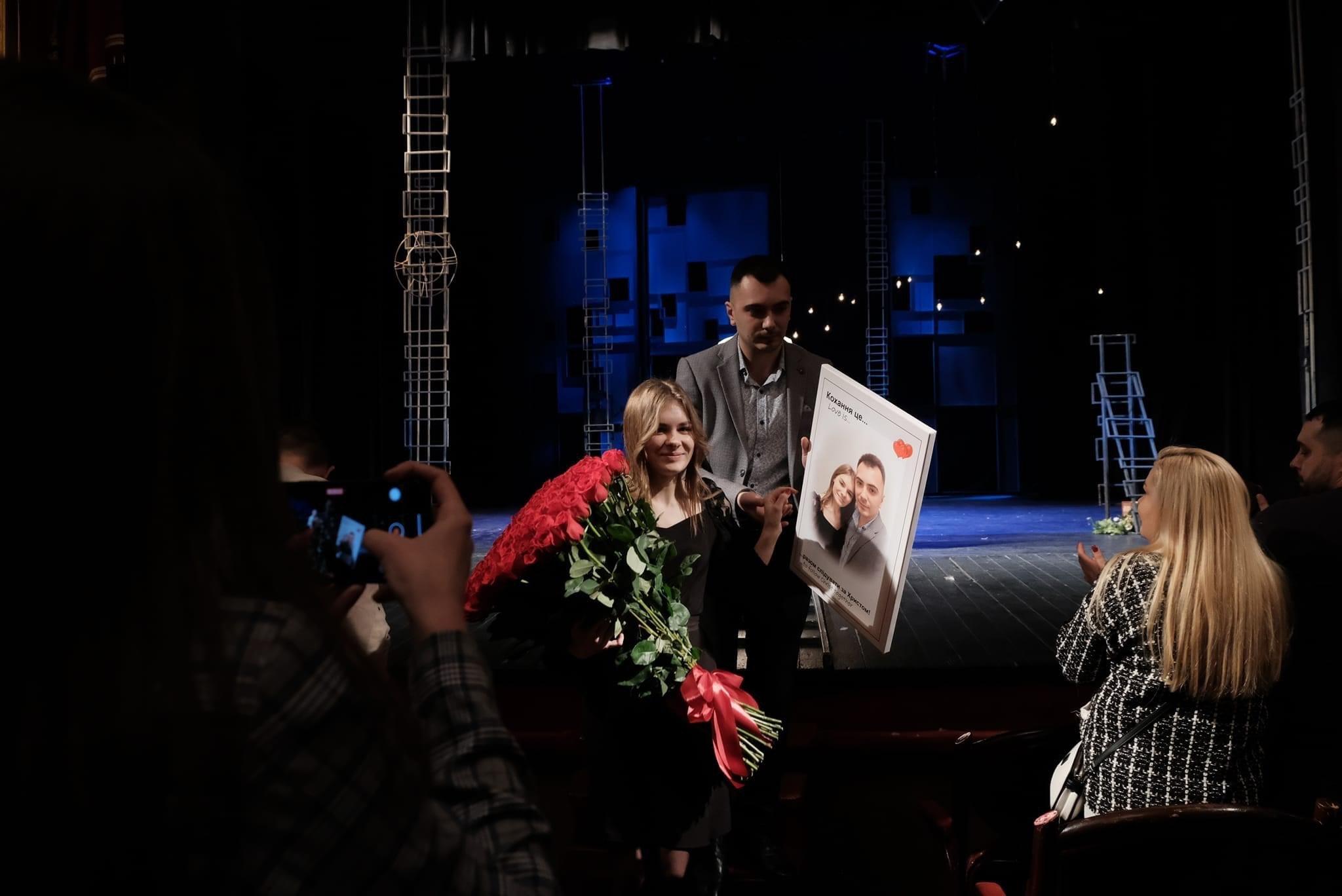 «І тут актори взяли слово, був підготовлений такий собі тематичний портрет пари. За кулісами великий букет квітів. Пару запросили на сцену під оплески. Власне тоді хлопець і освідчився», — резюмує керівник театру.