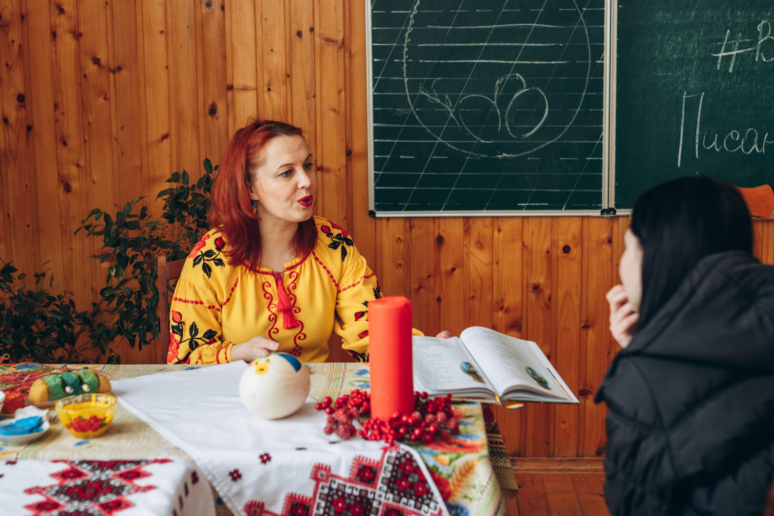 У школі вона проводить майстер-класи з писанкарства, малює з дітьми та викладає трудове навчання замість іншого вчителя, який зараз на війні.