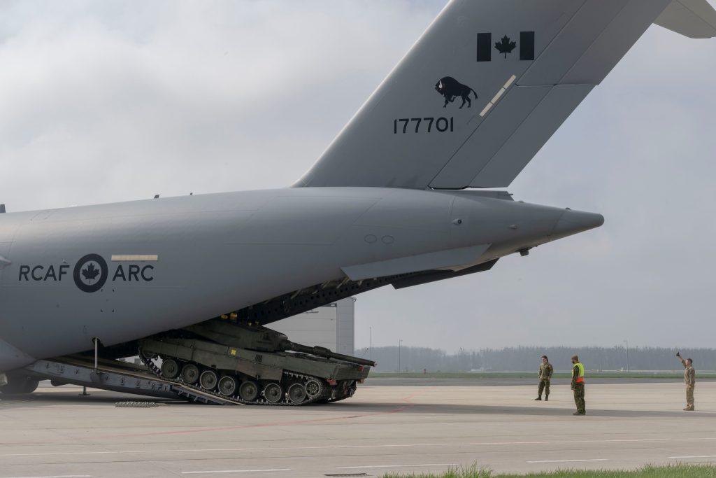 Танки Leopard 2 були завантажені та транспортовані літаком CC-177 Globemaster III Королівських Повітряних Сил Канади.