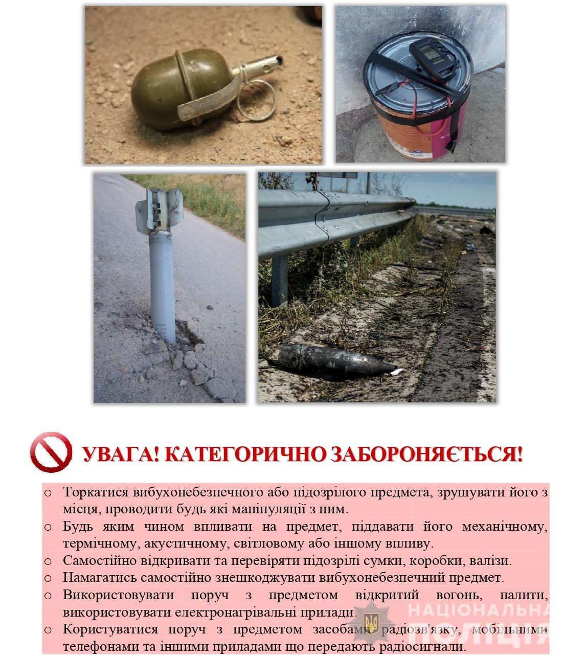 Поліцейські нагадують, як діяти у разі виявлення вибухонебезпечних предметів