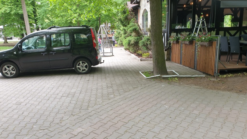 У центральному парку Чернівців можна помітити автівки біля закладів харчування.