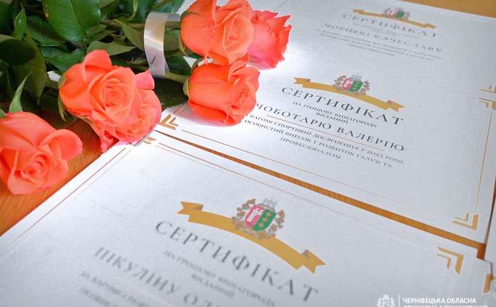 У Чернівецькій ОВА відбулася зустріч зі спортсменами – переможцями міжнародних спортивних змагань. Під час заходу начальник Чернівецької ОВА Руслан Запаранюк вручив кращим спортсменам області та їхнім тренерам сертифікати на отримання грошових винагород, повідомляє bukoda.gov.ua.