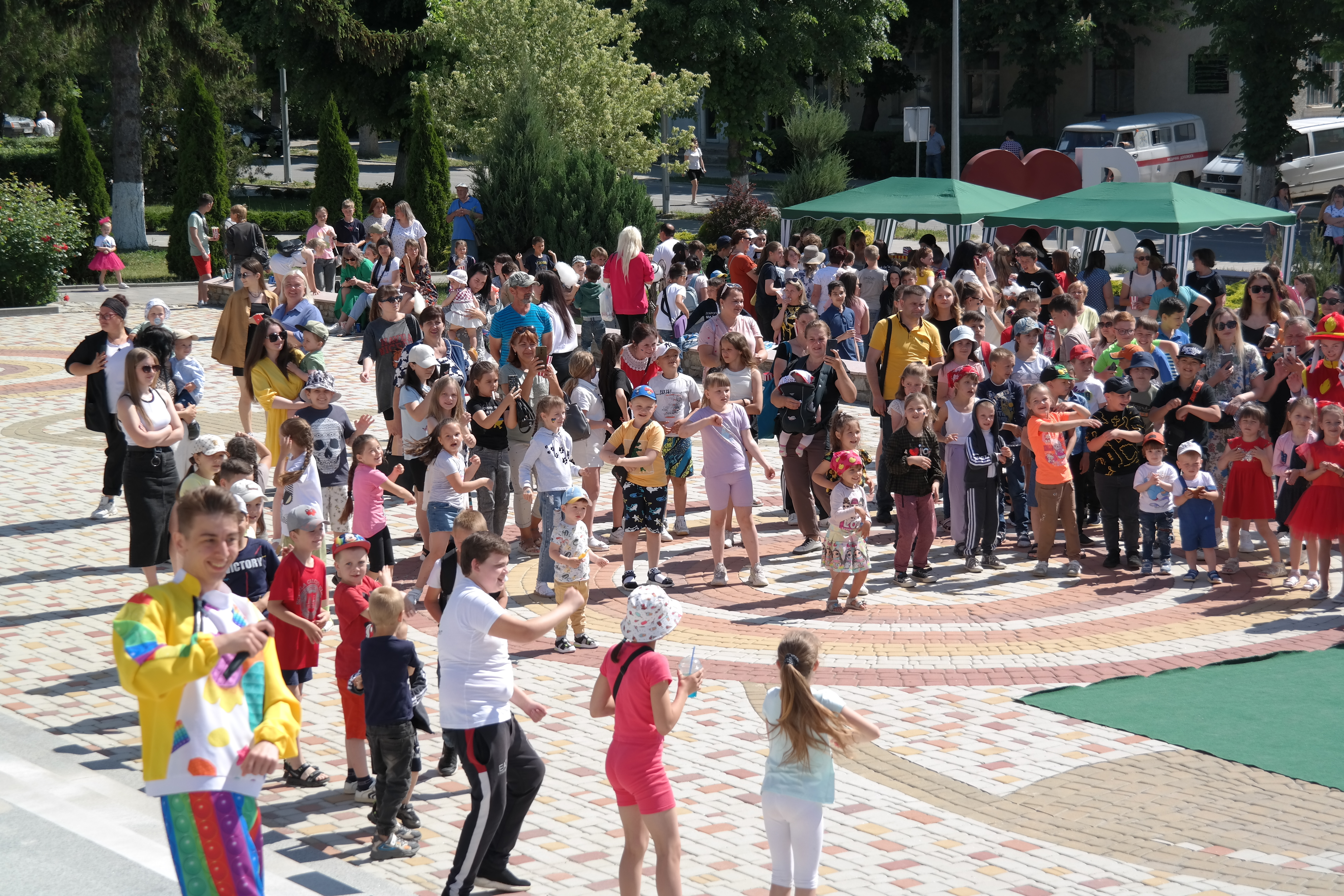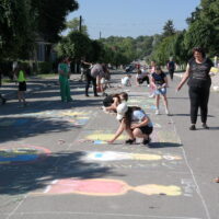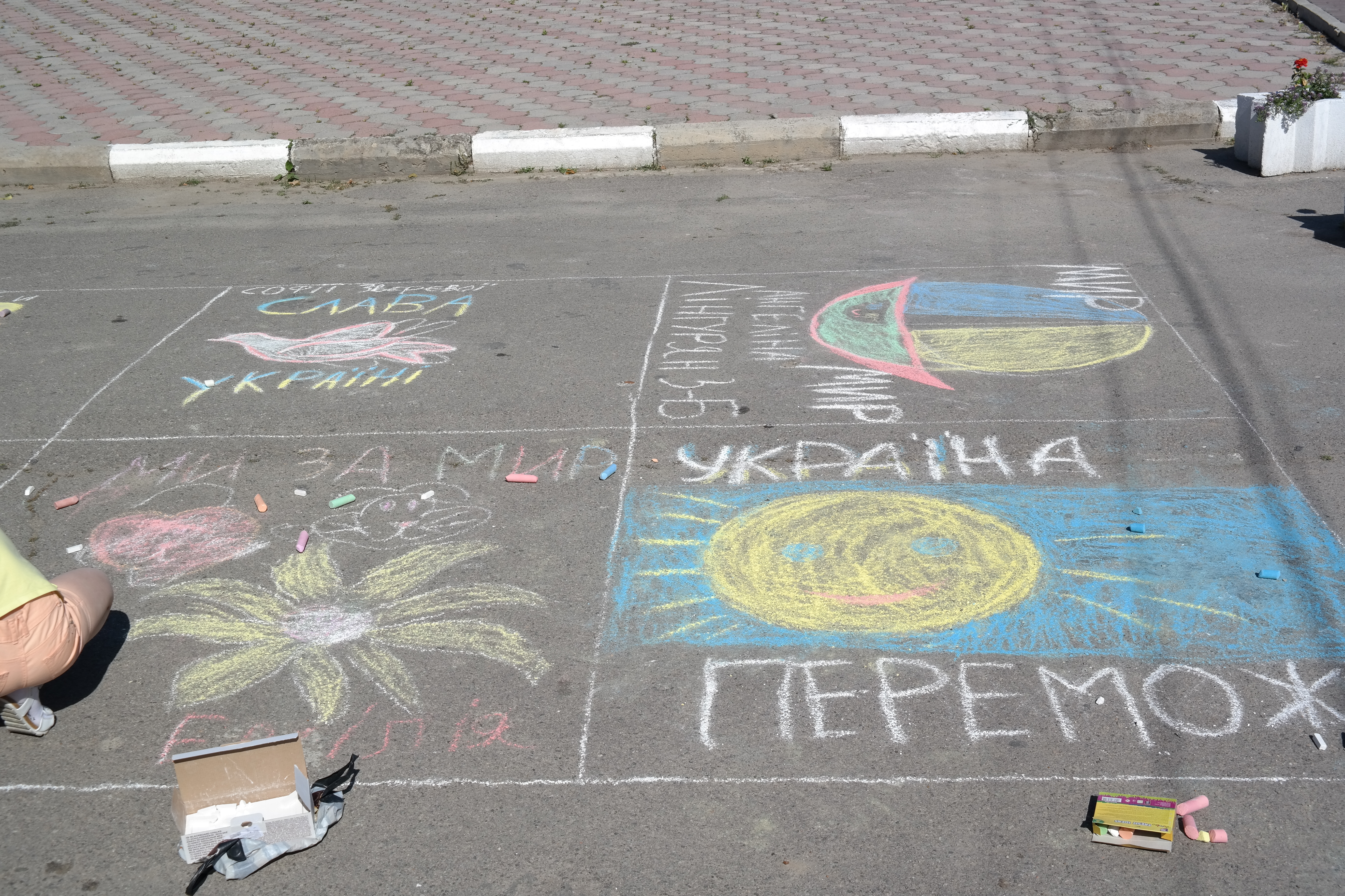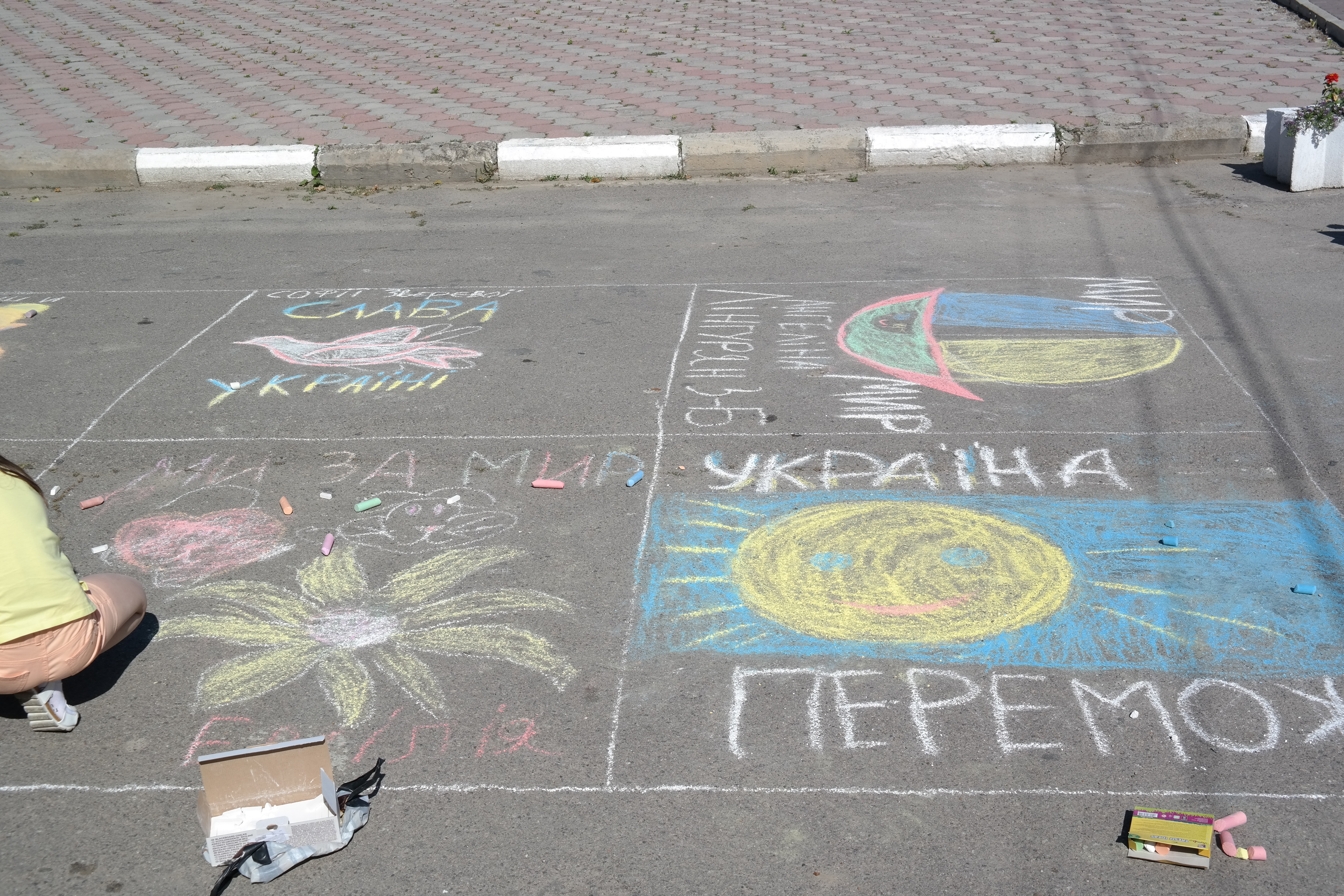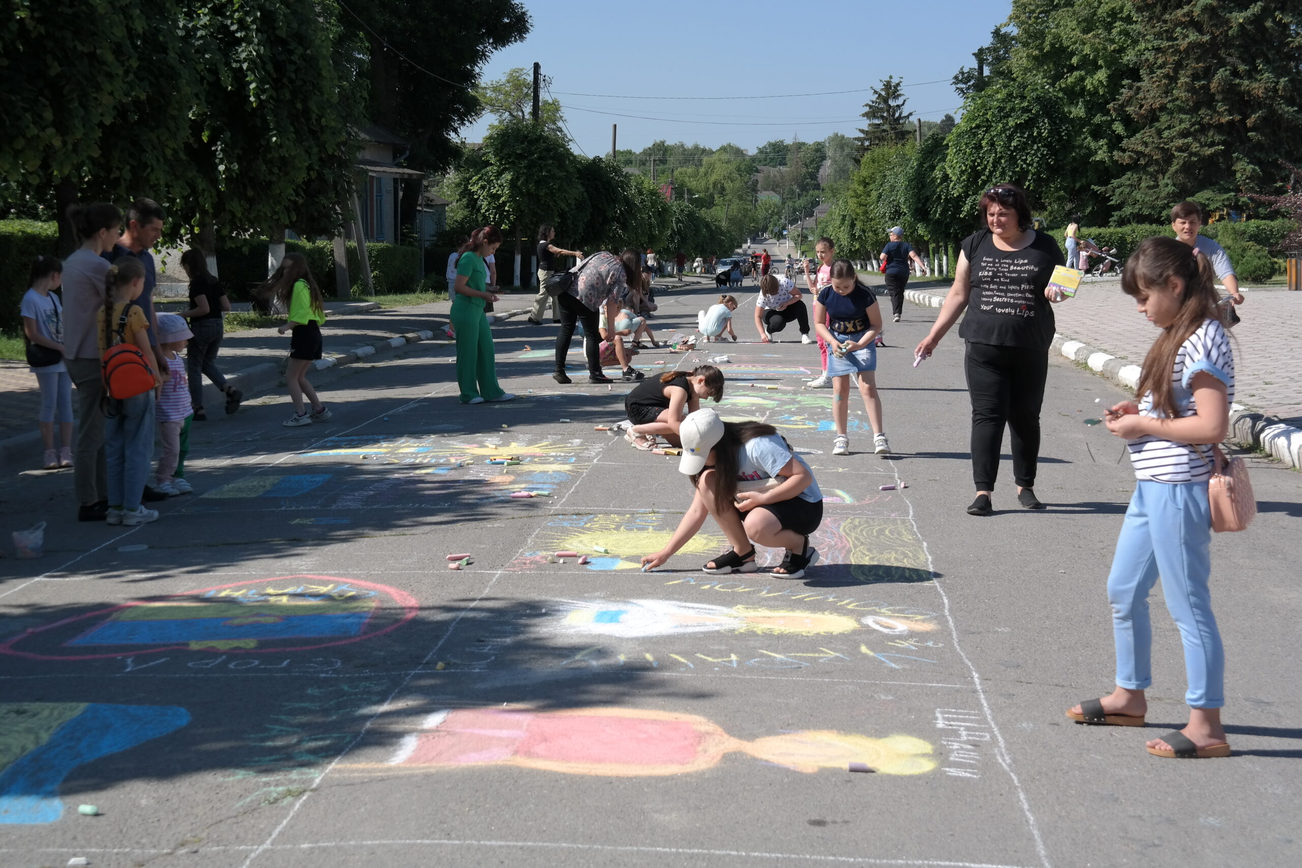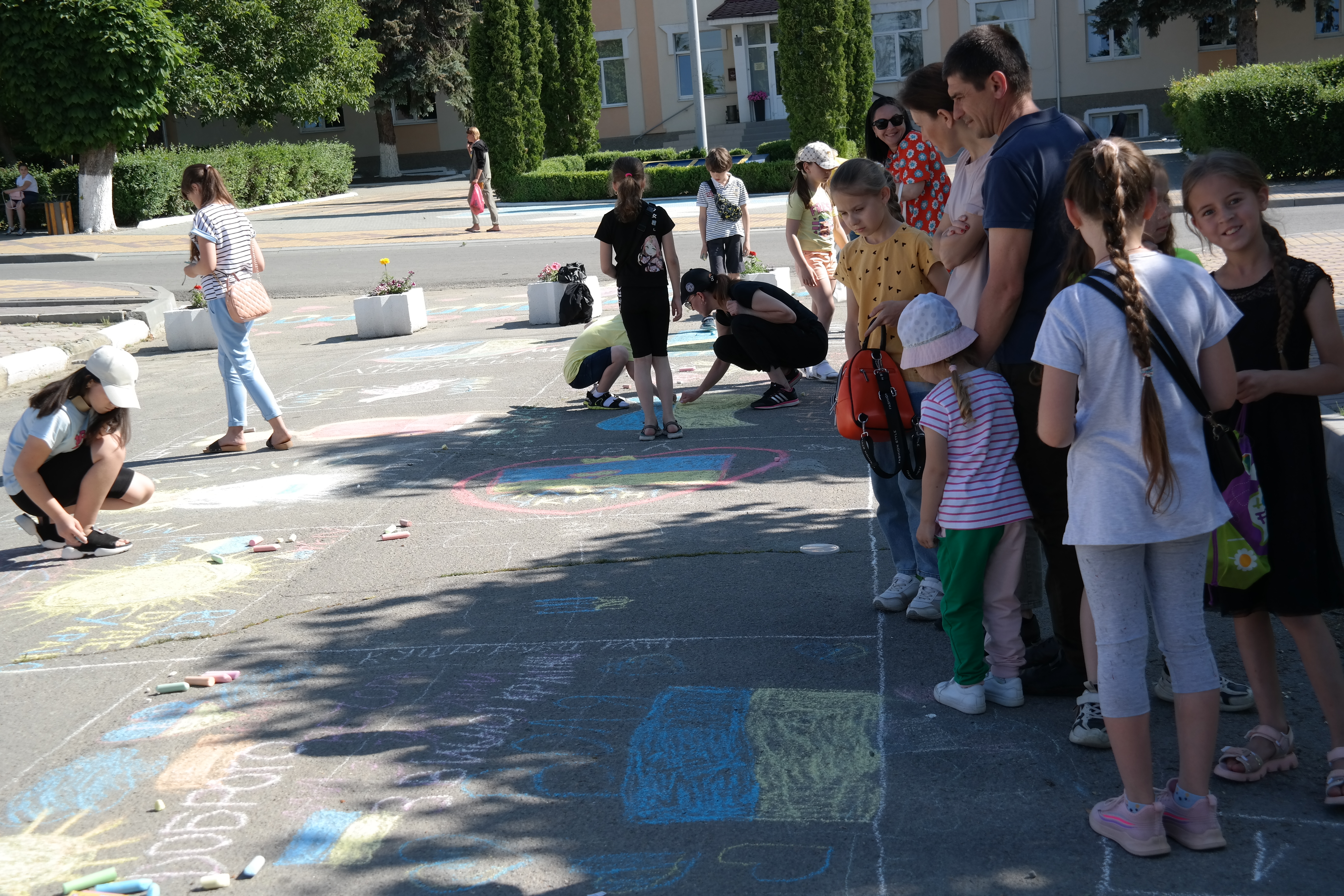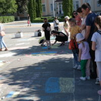 Традиційно, все розпочалося із конкурсу малюнка на асфальті, гасло якого цьогоріч – «Дітям – мир і доброта!». Діти фіксували на асфальті щасливі безтурботні моменти та мрії, головна з яких сьогодні – Перемога України у війні.