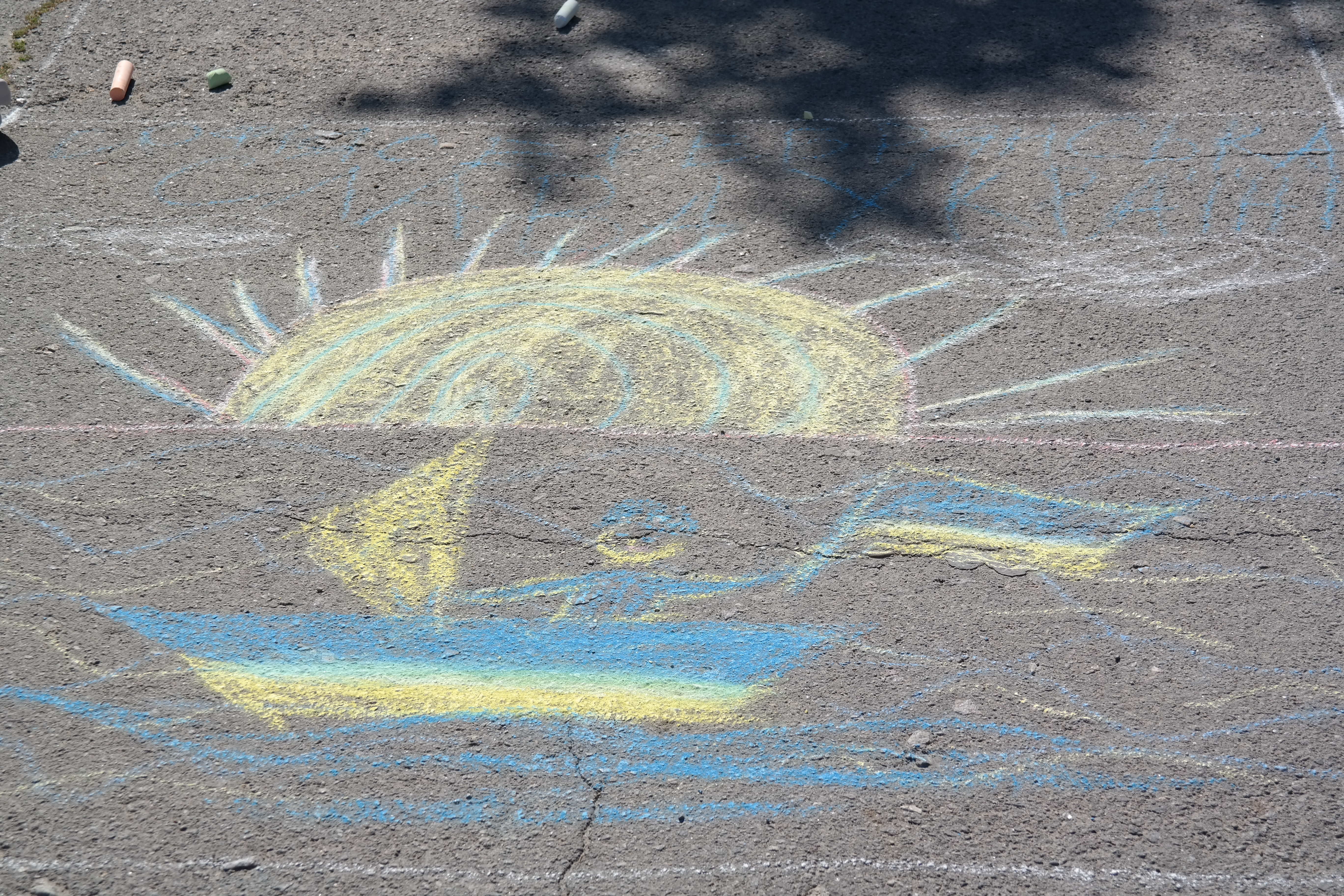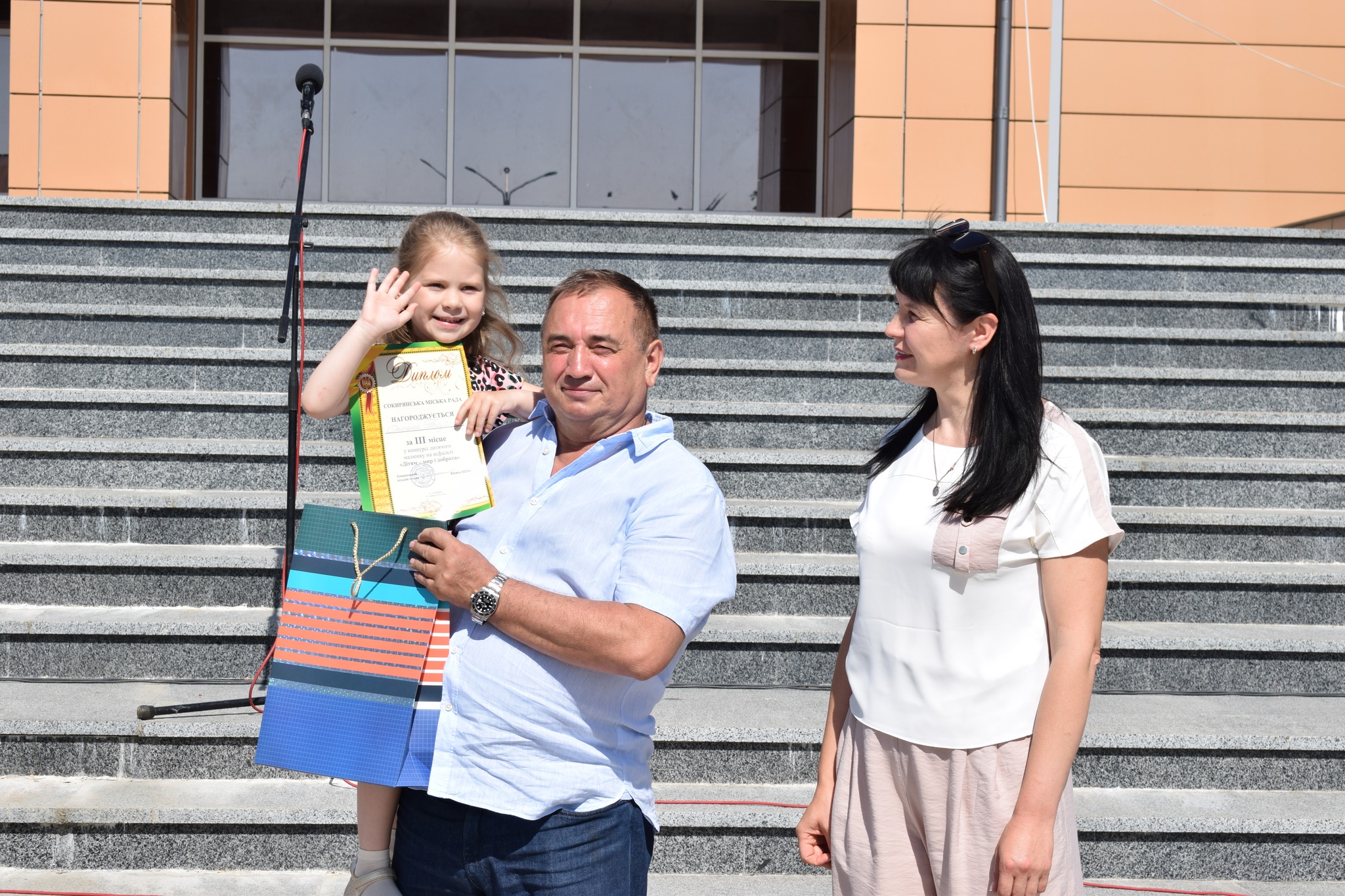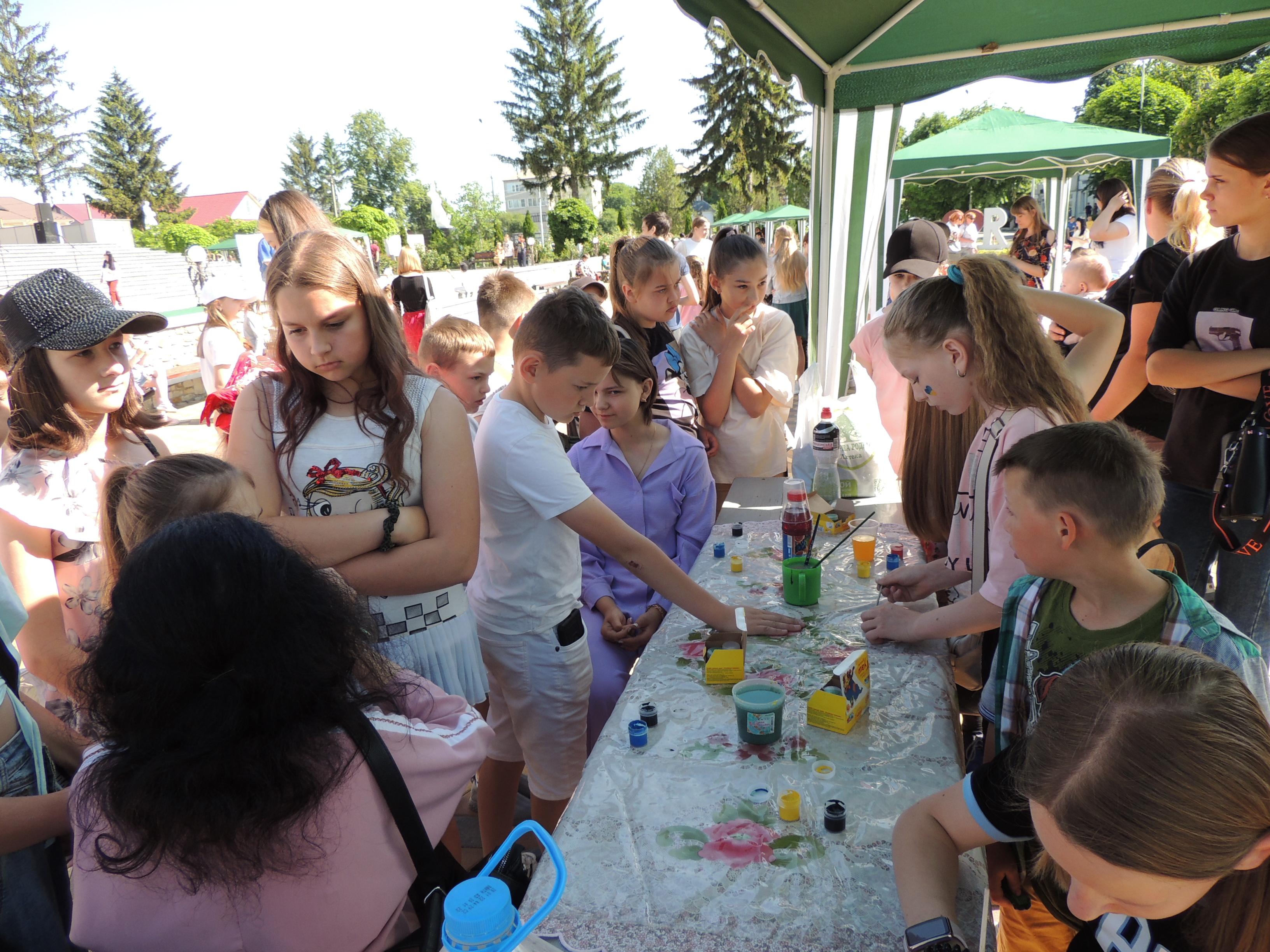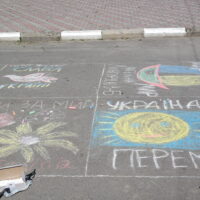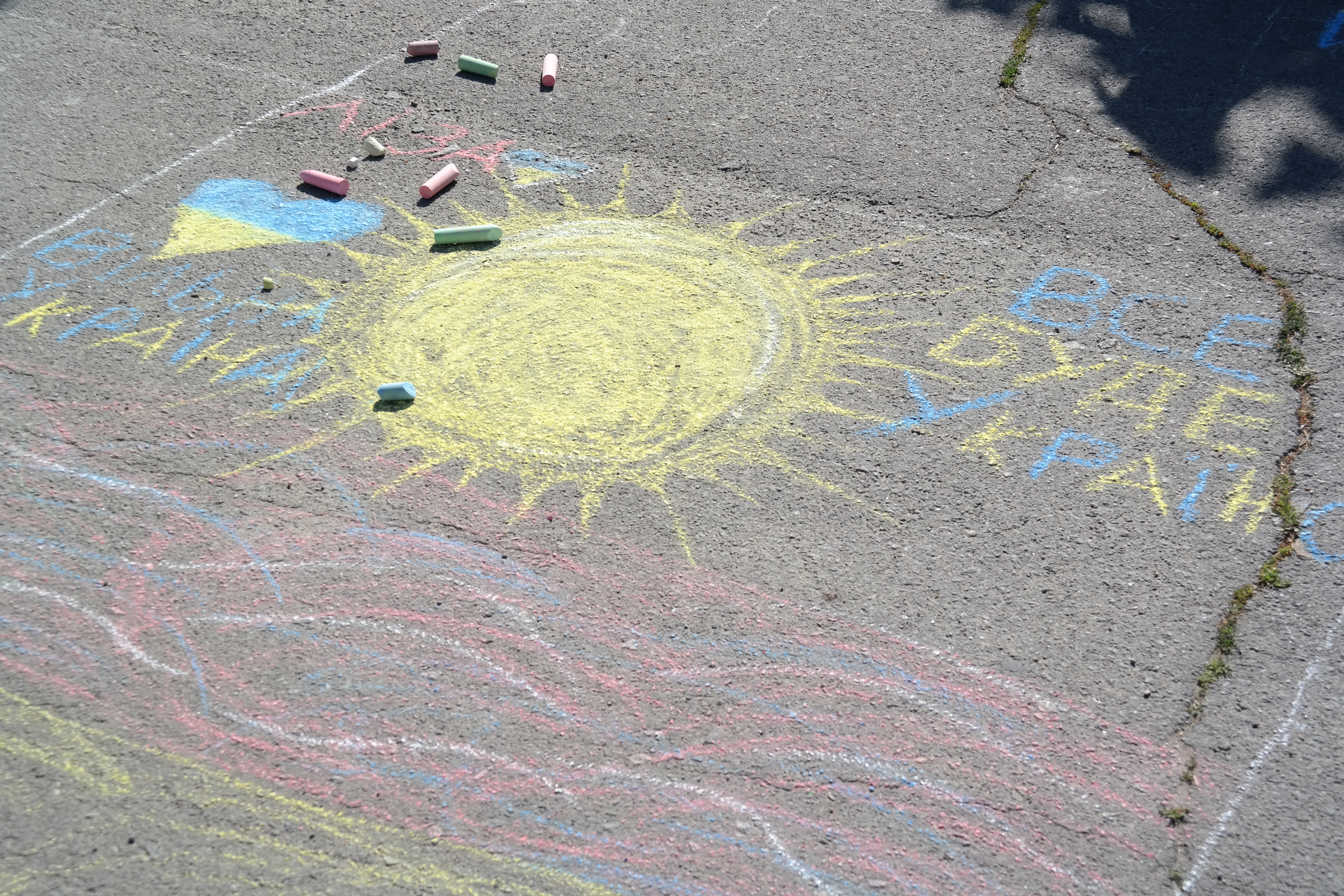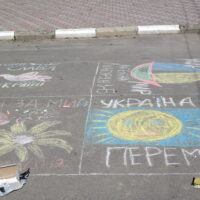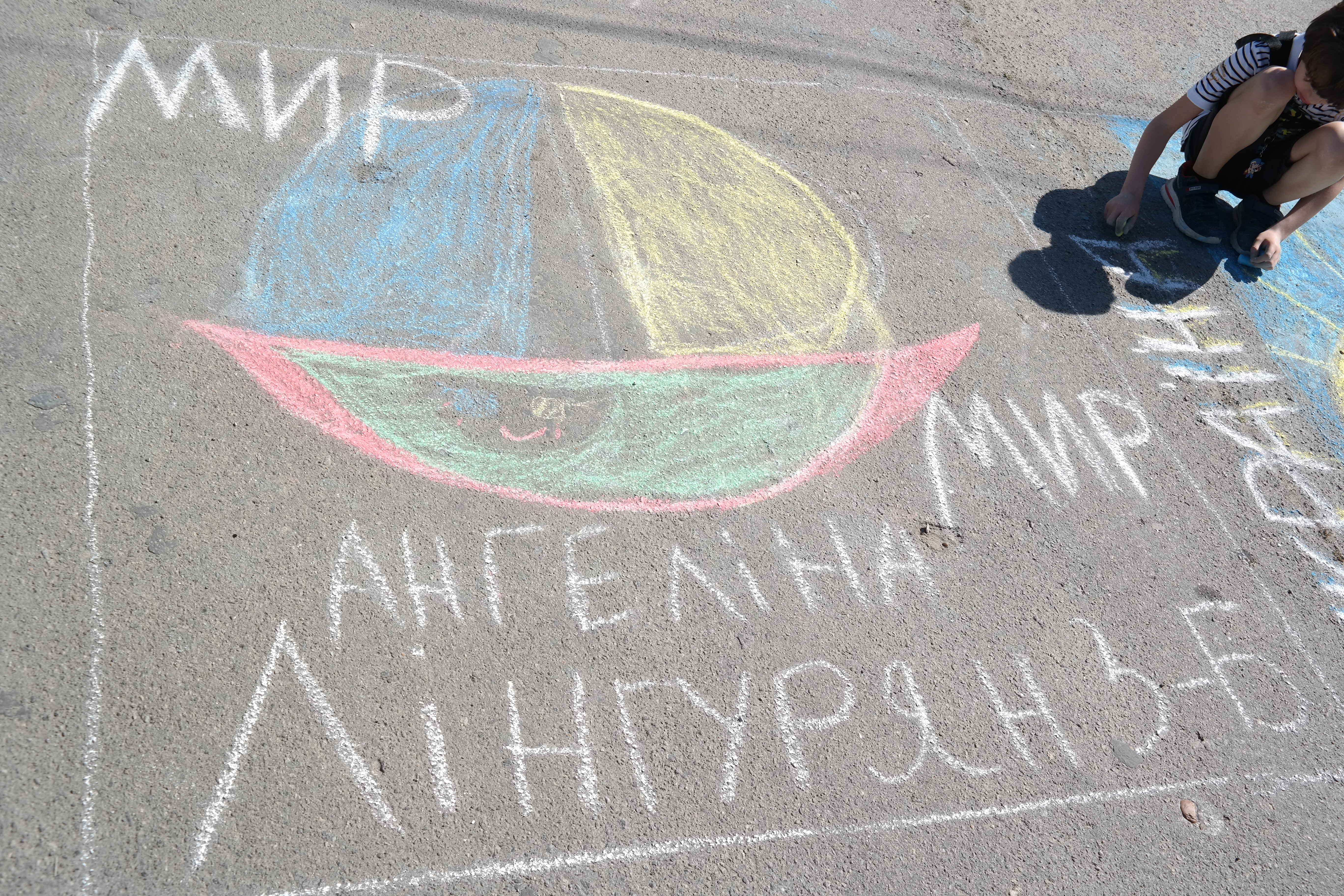 Традиційно, все розпочалося із конкурсу малюнка на асфальті, гасло якого цьогоріч – «Дітям – мир і доброта!». Діти фіксували на асфальті щасливі безтурботні моменти та мрії, головна з яких сьогодні – Перемога України у війні.