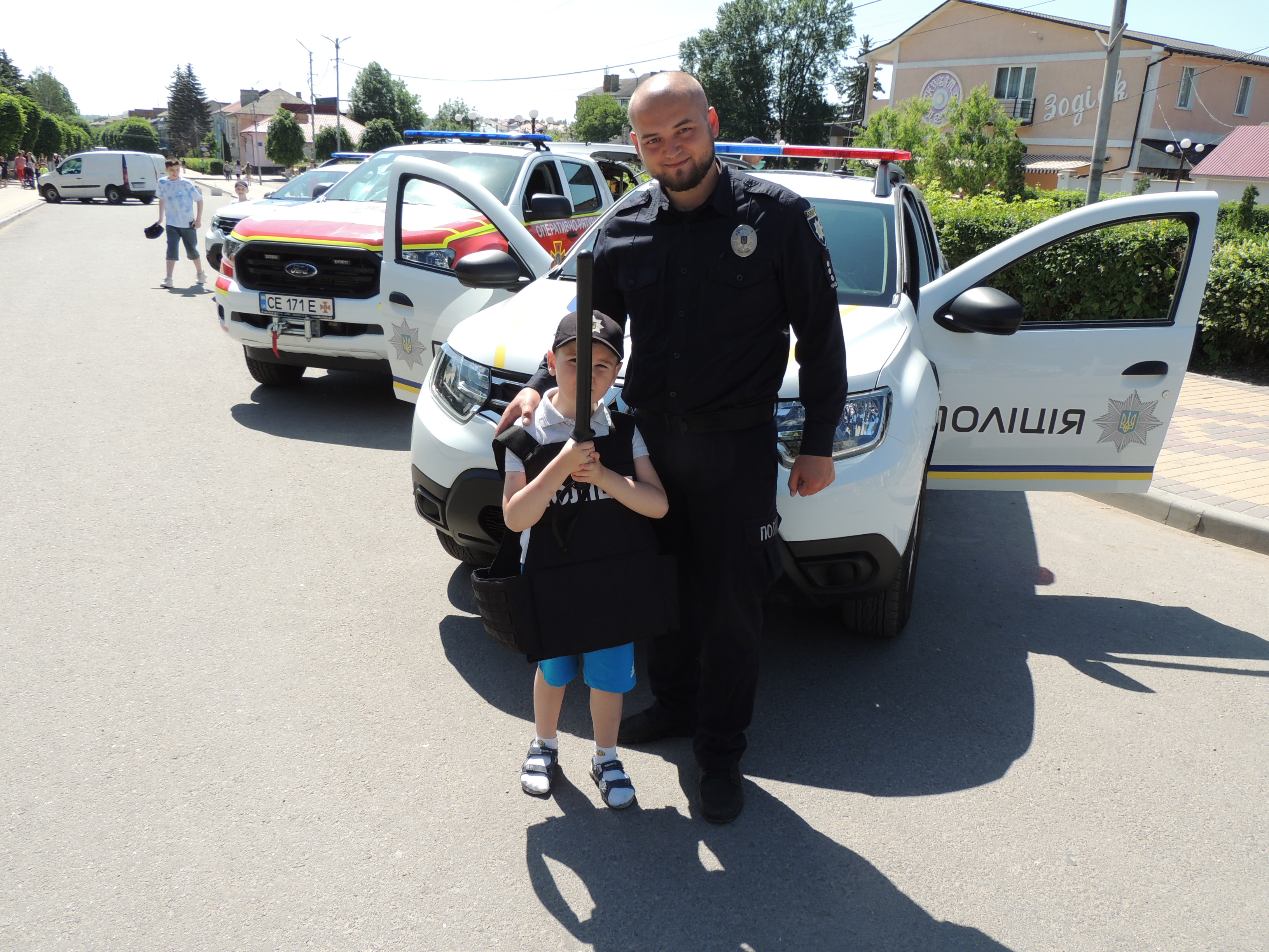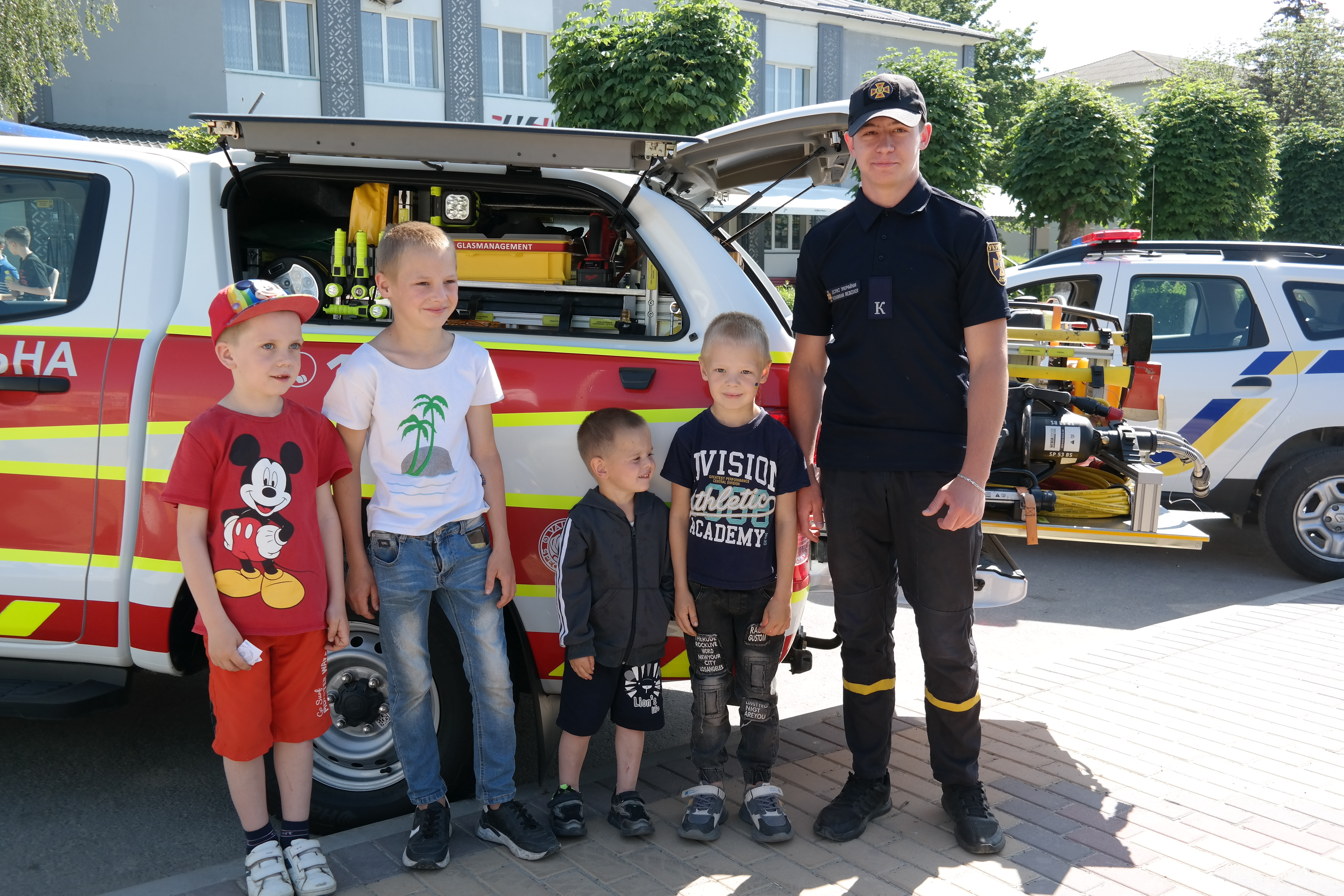 Юні хлопчики й дівчатка мали змогу нанести дитячий аква-грим, поласувати солодощами: морозивом, попкорном, солодкими напоями тощо, а також дізнатися таємниці пожежної техніки та побувати в службовому автотранспорті поліції.