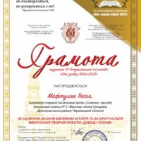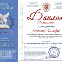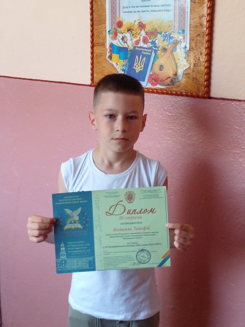 За результатами виконаних завдань та відповідно до рішення журі,  Дипломом ІІІ ступеня нагороджено Тимофія Беспалька, учня 2 класу Вітрянської гімназії-філії опорного закладу «Михалківський ліцей».