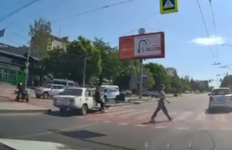 На відео видно, як водій електросамоката їде на нерегульованому пішохідному переході.