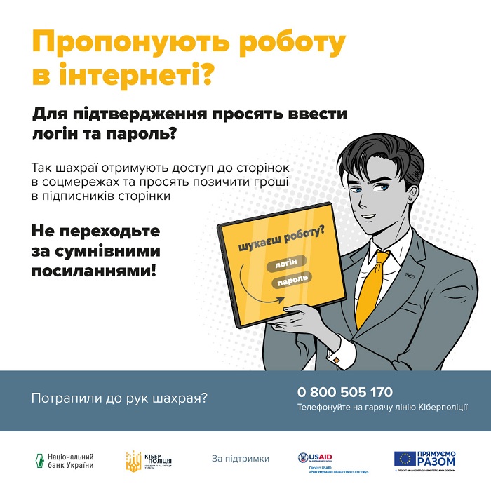 Якщо ви стали жертвою шахрайства, заповніть форму зворотного зв’язку на сайті кіберполіції: https://ticket.cyberpolice.gov.ua/ або повідомте про ваш випадок за номером телефону: 0 800 505 170.