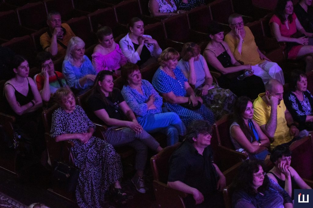«Двоє наших акторів із невеликої трупи зараз служать. Інколи вони отримують відпустку, і ми разом із ними можемо зіграти у виставах, які в нас залишилися, зокрема і сьогоднішню п’єсу. Вона є в нас першою після початку війни», — ділиться Володимир Петренко.