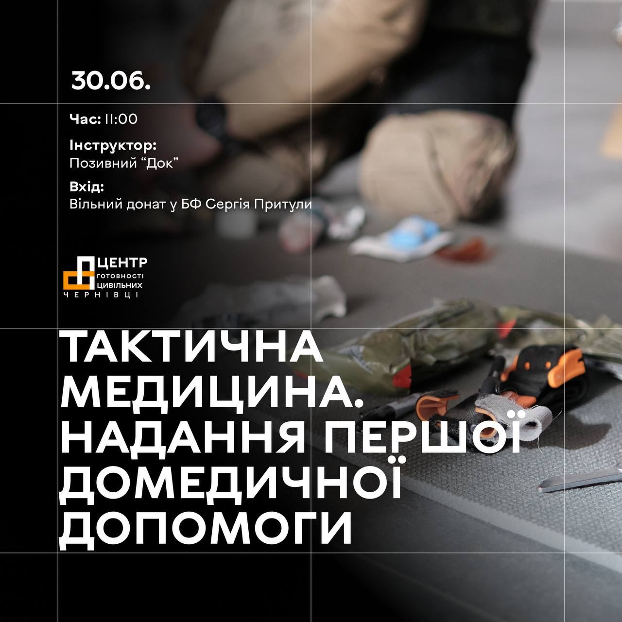 У пʼятницю, 30 червня, у Чернівцях проведуть тренінг «Тактична медицина. Надання першої домедичної допомоги».