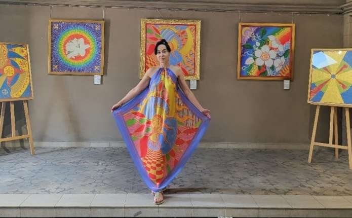 Людмила Хімейчук у шовковій сукні із зображенням тієї першої Даяти, яку написала для мами