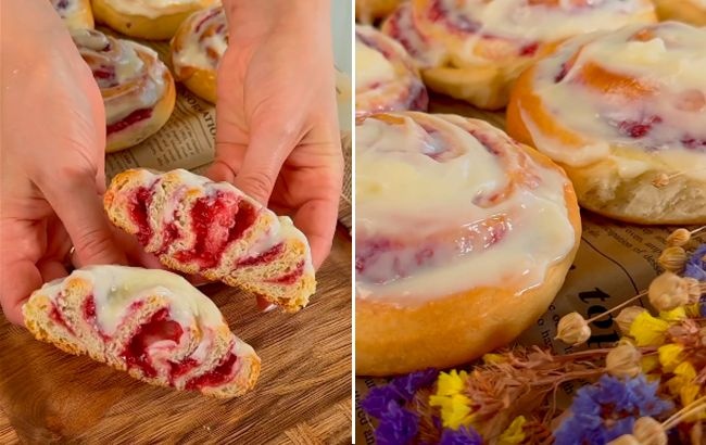Найкращий варіант побалувати родину. Тримайте рецепт сінабонів з малиновою начинкою