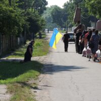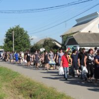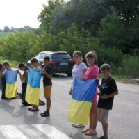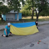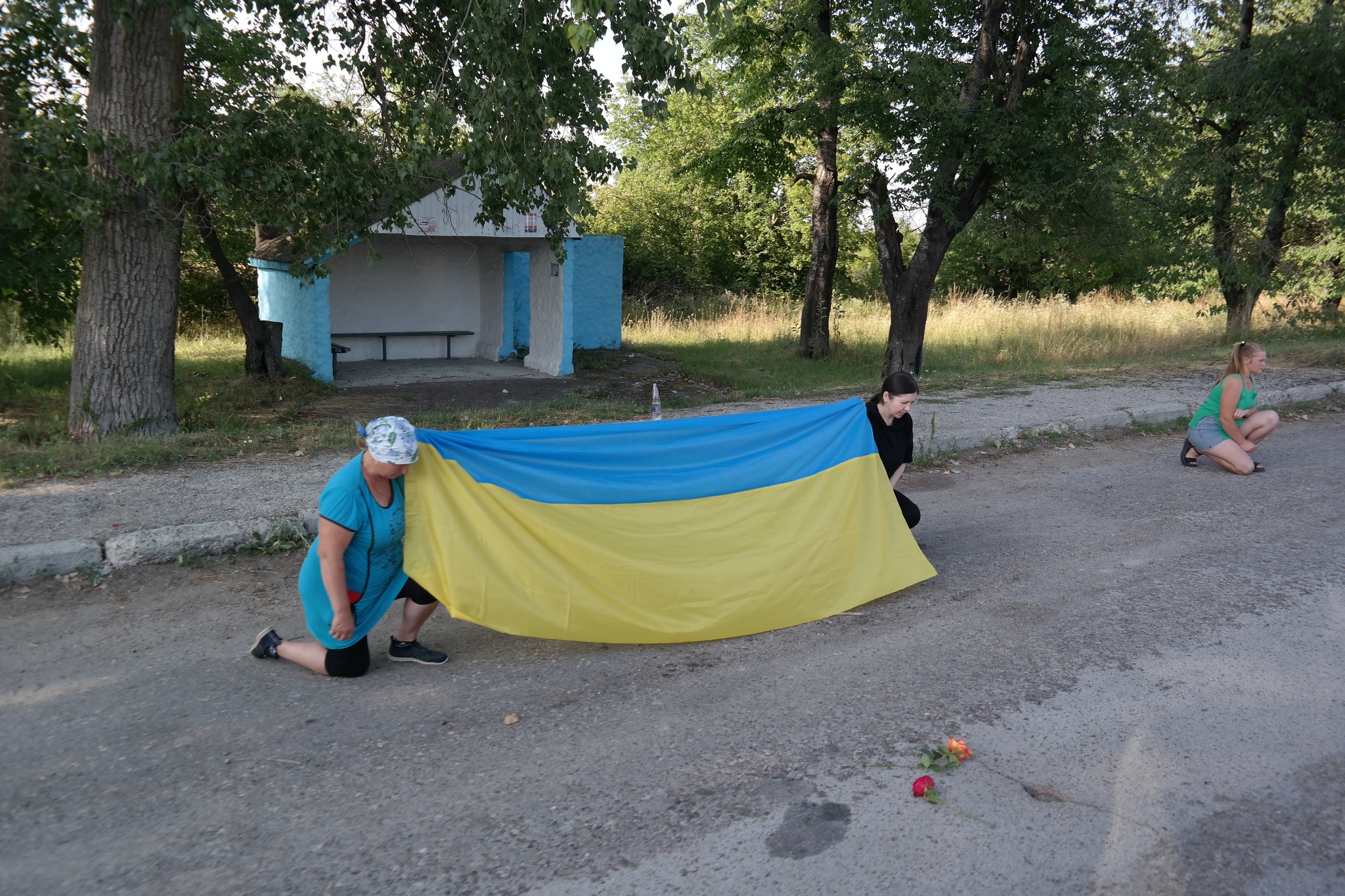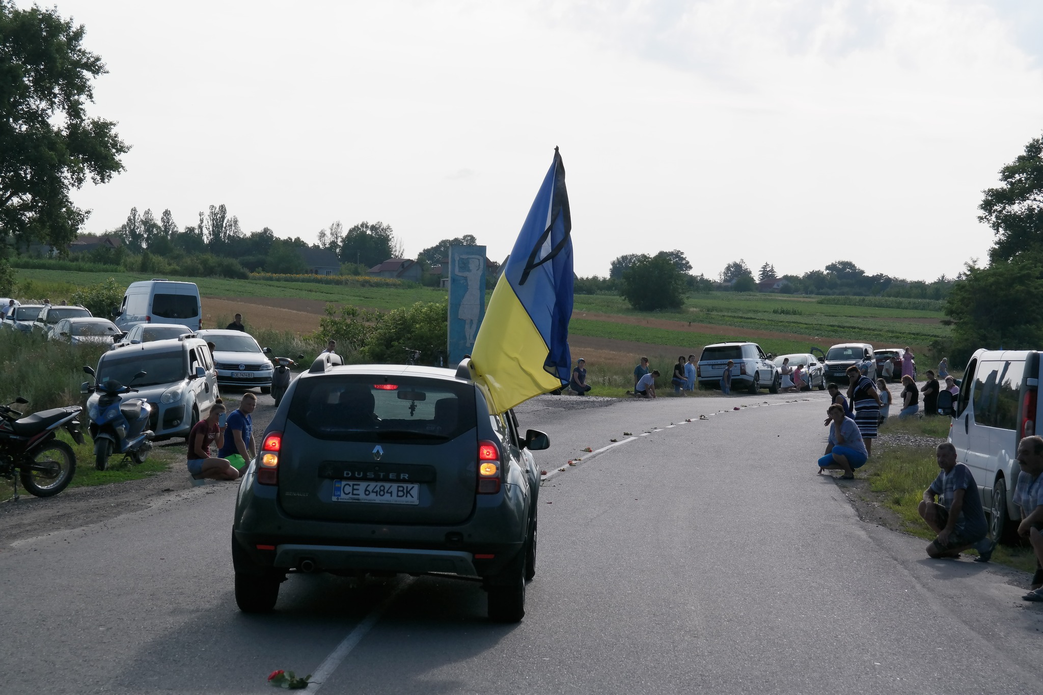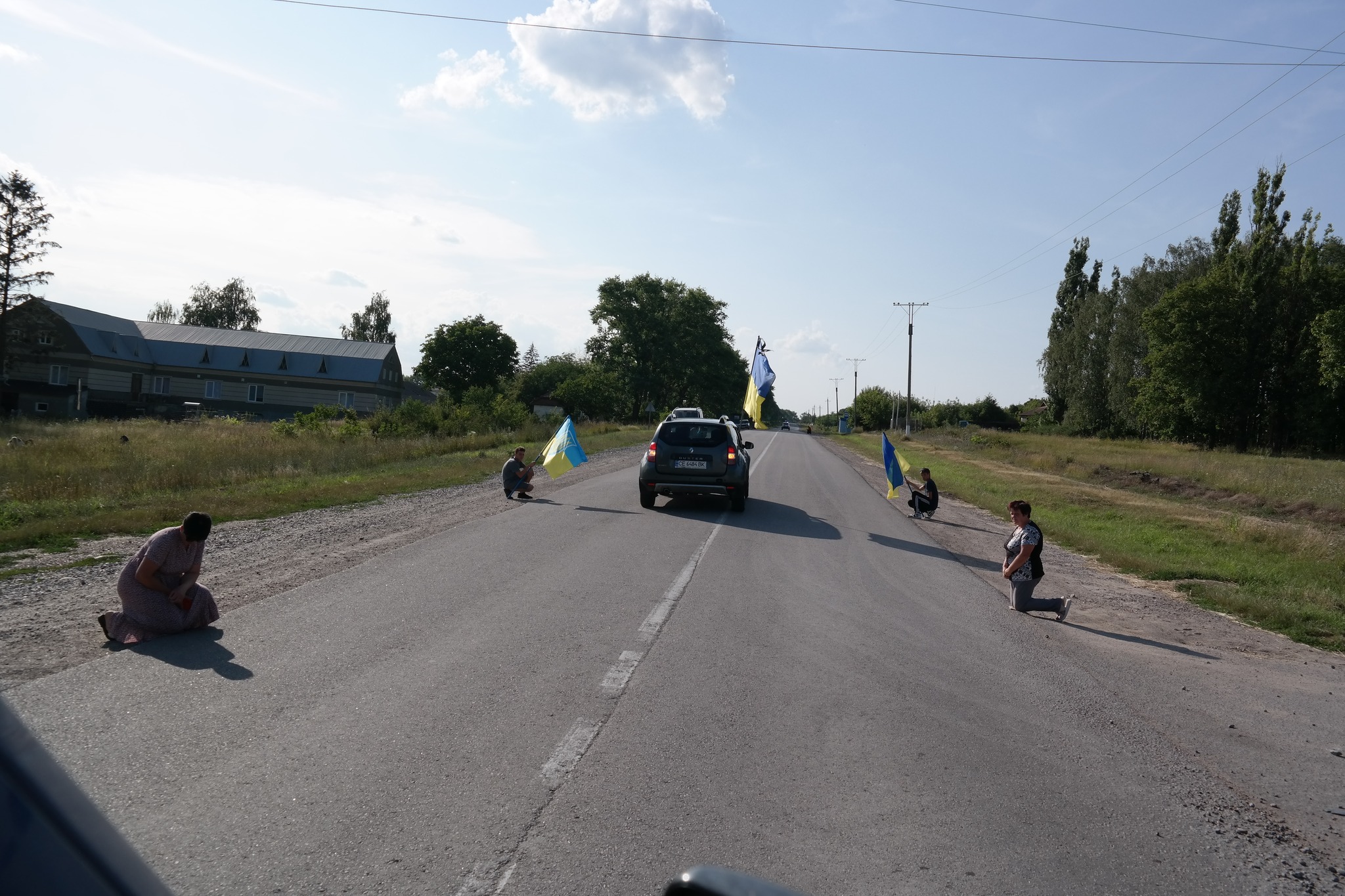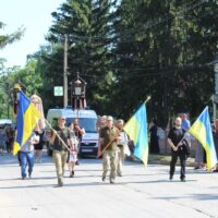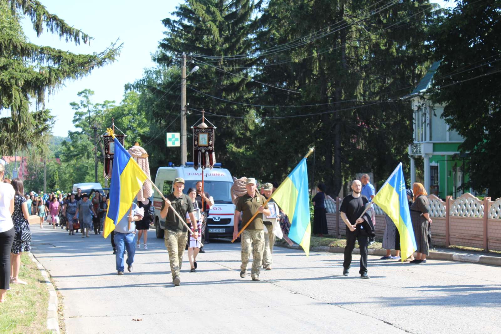 Схиливши голови у скорботі, жителі громади проводжали військовослужбовця за всіма військовими почестями, утворивши живий коридор з синьо-жовтими прапорами, ставши у повазі й вдячності на коліна.