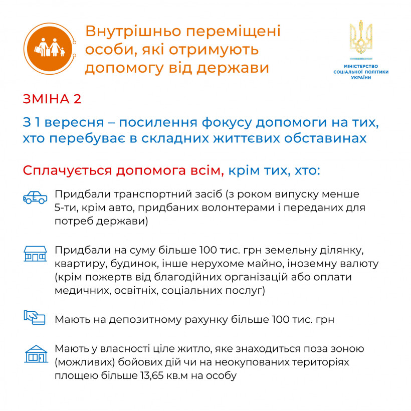 Як повідомлялося раніше, 11 липня Уряд прийняв постанову «Деякі питання підтримки внутрішньо переміщених осіб», яка вносить зміни до порядку призначення виплат на проживання для ВПО.