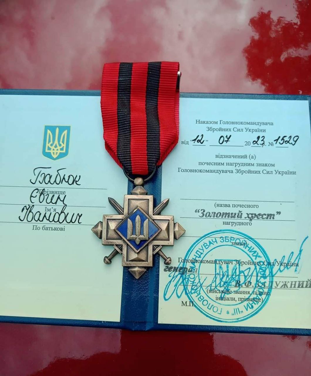 Військовослужбовця з Буковини посмертно нагородили нагрудним знаком «Золотий хрест» від Головнокомандувача ЗСУ.